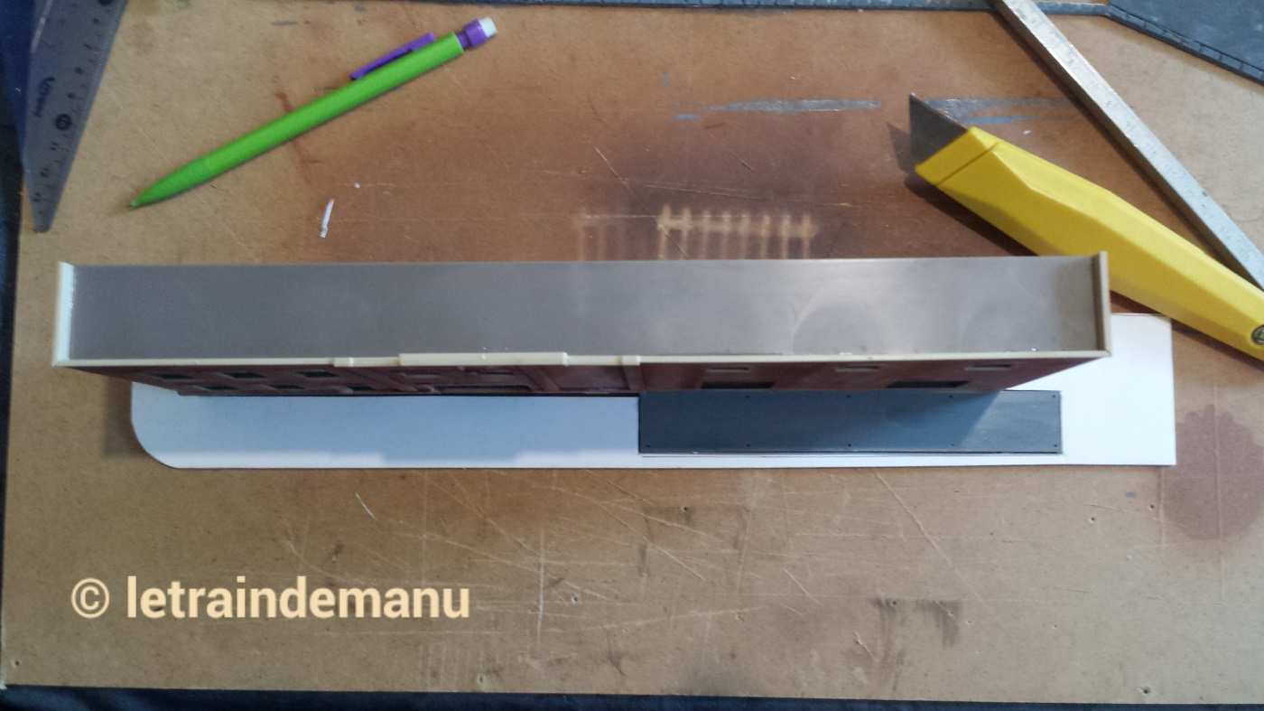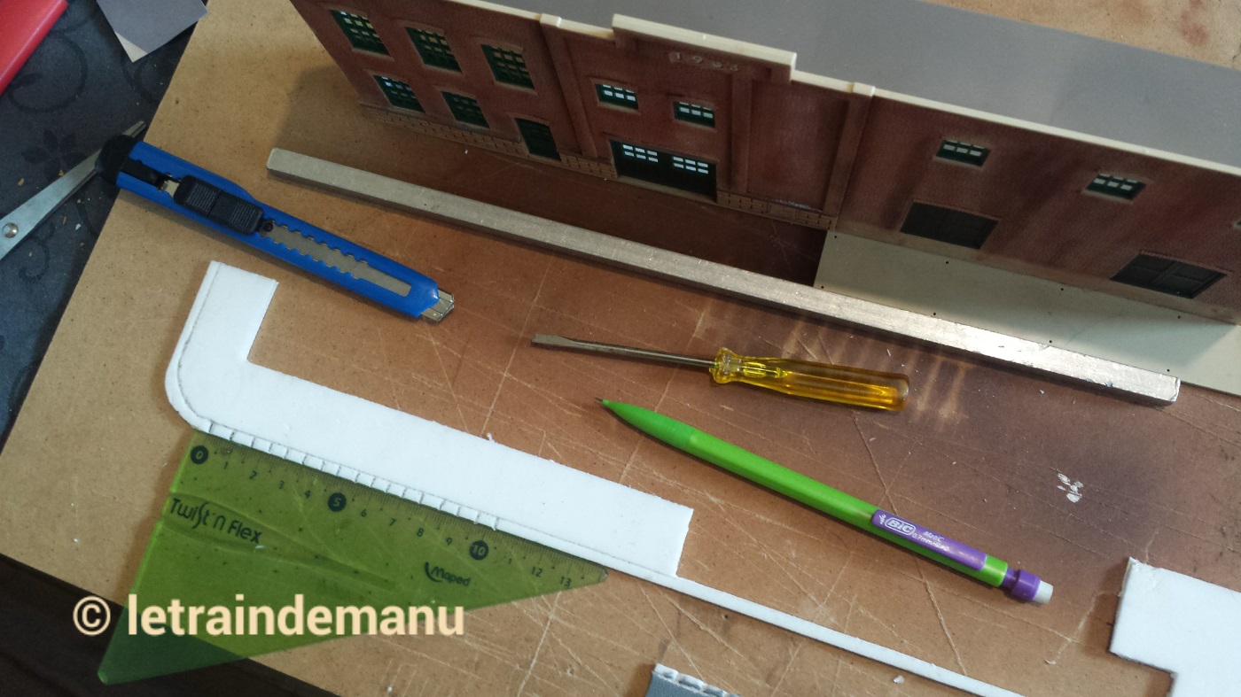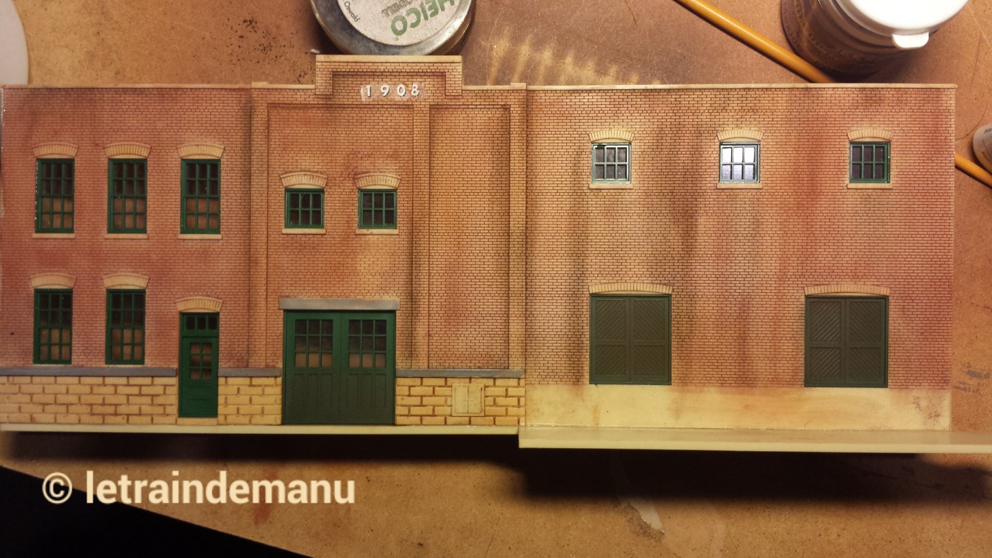 Il ne manque plus pour ce bâtiment qu’un trottoir. Il est d’une largeur à peine supérieure au quai de chargement et confectionné dans du Carton-plume© de 10 mm d’épaisseur. La technique de la cendre de cigarette pour les chaussée et trottoir ayant déjà été décrite dans l’épisode précèdent, je vous invite à vous y reporter.