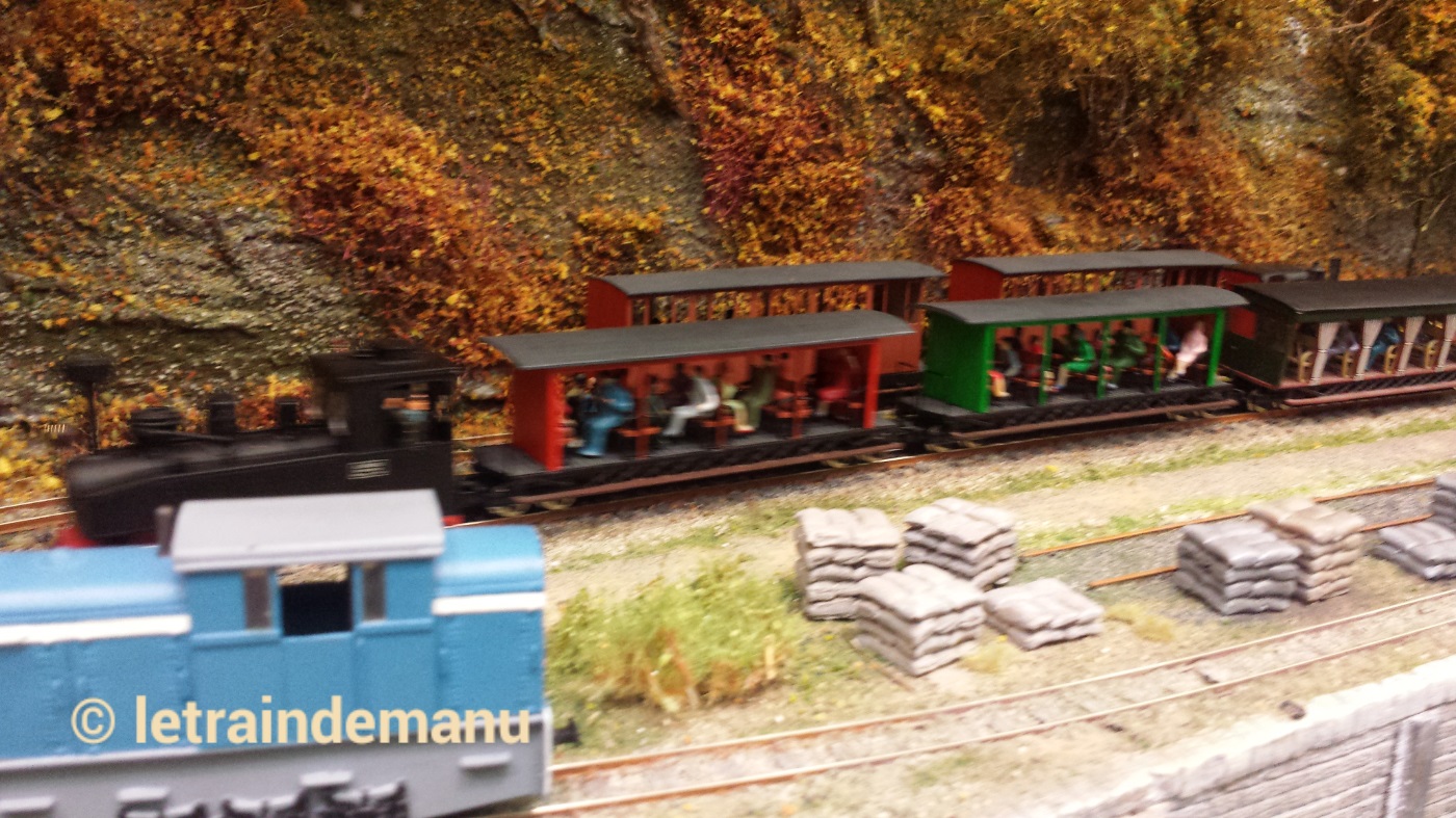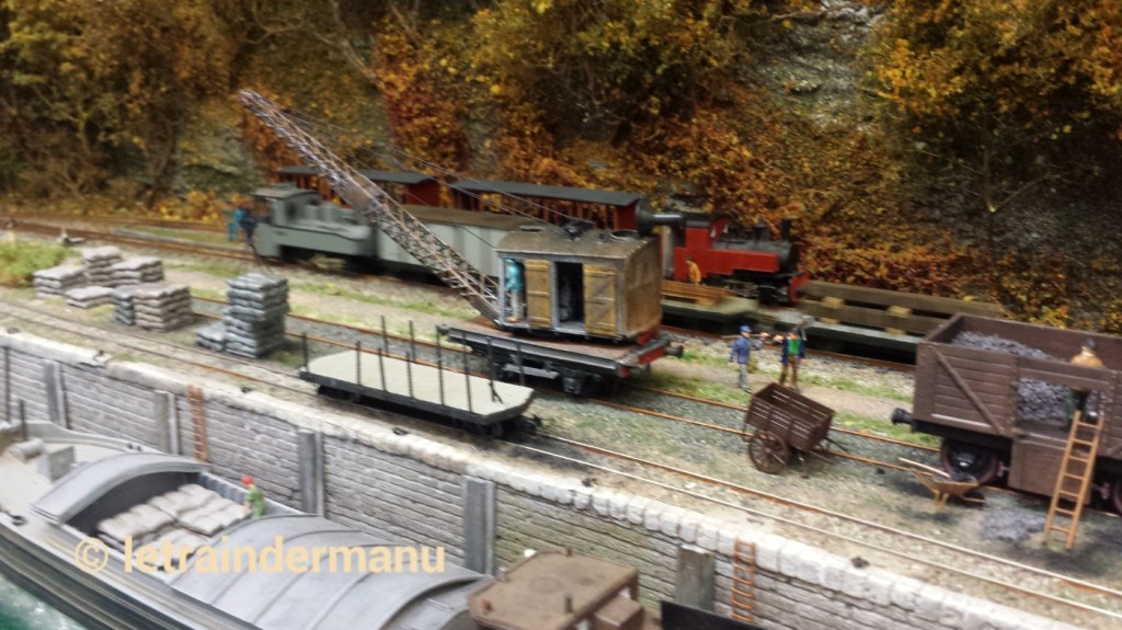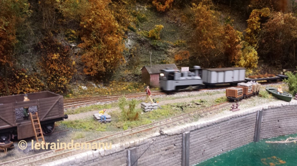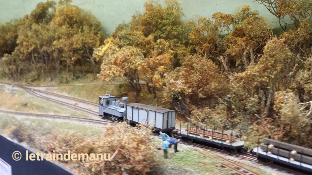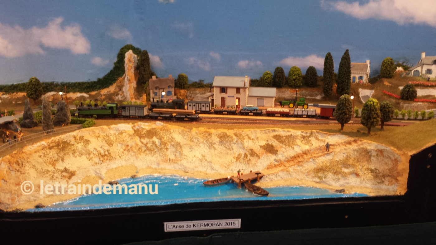 Toujours sur le stand de l’AFAN, on pouvait admirer la reproduction d’une petite ligne d’intérêt local avec « l’anse de Kermoran« , « La savonnerie » et « Le bourg » (photos 155 à 159 ci-dessous).