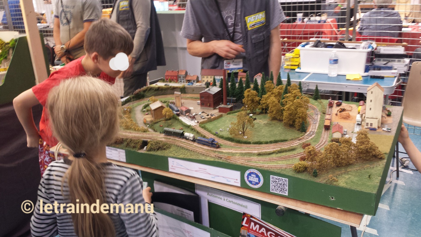 L’AFAN proposait aux visiteurs de s’essayer à la conduite de trains miniatures sur un petit réseau de démonstration en N (photo 154 ci-dessous), une échelle qui conserve toute sa pertinence en terme de surface. Et la demoiselle en action est une preuve bien tangible que notre hobby n’est plus genré depuis bien longtemps et que la relève est assurée. Les femmes qui s’aventurent dans cette passion ferroviaire nous ont maintes fois prouvé qu’elles savaient porter une vision souvent très artistique dans leur pratique, excellant dans des décors d’une grande qualité et fourmillant de détails. D’ailleurs, les couples de modélistes, qu’ils soient frères et sœurs, épouse et mari ou simplement amis, sont généralement de redoutables concurrents en concours.