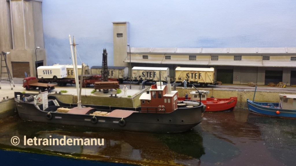 Retour au Ho avec le module portuaire Liberty-rail (photos 160 à 162 ci-dessous) au décor particulièrement soigné avec une ambiance bien restituée. Manquait plus que l’odeur de la marée.