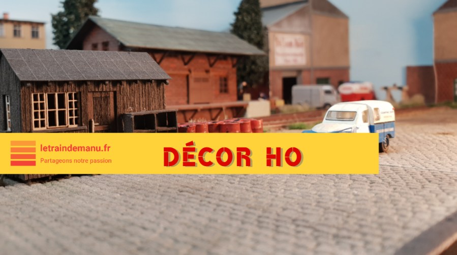 Il dispose de deux voies. La première, à l’avant plan (E3b), pourrait recevoir du charbon (wagons tombereaux), du bois de chauffage (wagons tombereaux également ainsi que des wagons couverts pour le bois qui doit être protégé des intempéries), des futs d’huiles (sur wagons plats ou en wagons couverts), et des bouteilles de gaz (en wagons couverts je suppose). La seconde voie (E3a) serait réservée aux wagons citernes de ce dépôt de transit (fioul domestique, gasoil agricole et essence), la place disponible entre cette voie et la voie principale (en fond de module) me permettant de disposer trois citernes verticales. Leur hauteur donnera du volume et masquera le départ du train dans la coulisse Est.