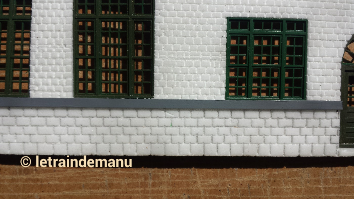 Je ne dispose pas du matériel nécessaire à la confection de fenêtres aux fins montants. J’ai donc décidé d’utiliser les portes et fenêtres surnuméraires de mon kit Walthers-Cornerstone (Voir l’épisode 31). Elles sont typiquement industrielles. A défaut de ce kit, vous pouvez piocher dans votre boîte à rabiots voire trouver des éléments particuliers auprès de plusieurs artisans. Le choix est assez vaste selon les époques ou les régions de votre réseau.
