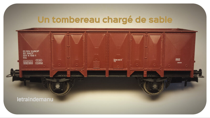 En plus de la saleté commune à tous ces types de wagons, les tombereaux sont teintés des produits qu’ils transportent, en particulier pour les matériaux en vrac (sable, calcaires, briques,…). Pour donner une teinte « sable » à ce wagon régulièrement utilisé pour ce transport, j’ai simplement plongé mon wagon, retourné, dans mon bac de sable et l’ai ainsi frotté à plusieurs reprises jusqu’à ce qu’il s’imprègne suffisamment de la poussière de ce matériau (Photo 309 ci-dessous).