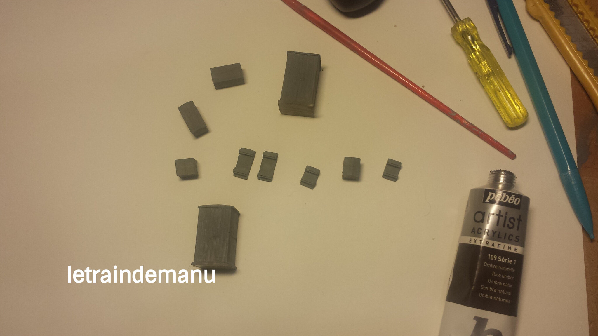 - Un peu de rouge brique pour simuler des taches de rouille sur les caisses à piles.
