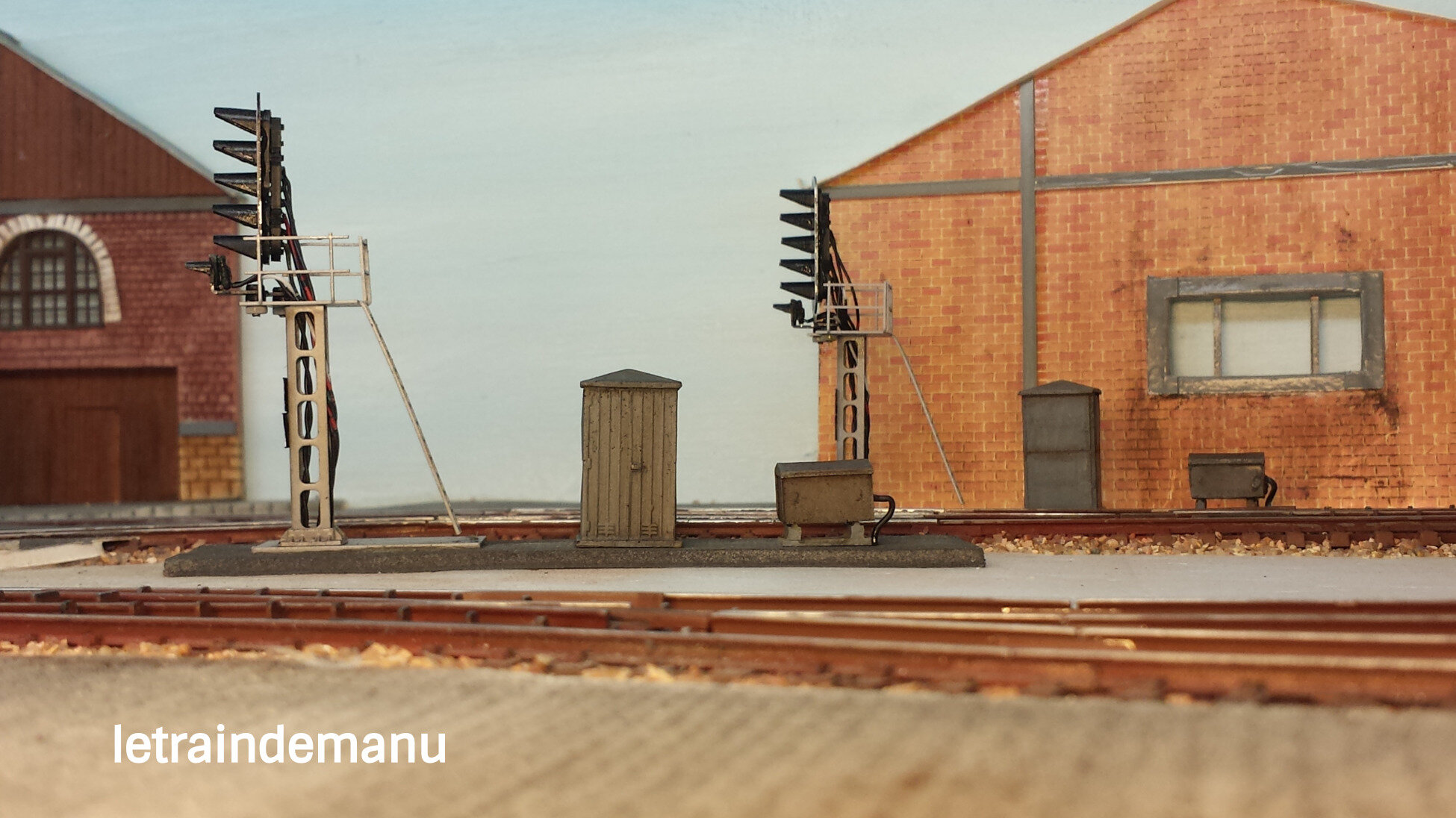 La sortie Est de ma Z.I. Nord est équipée de deux cibles lumineuses à cinq feux pouvant présenter le carré, la voie libre et le feu blanc de manœuvre. L’avertissement n’a ici pas lieu d’être. Ces signaux nécessitent, dans la réalité, des relais et une alimentation électrique regroupés dans une armoire électrotechnique, ainsi qu’une caisse à accus (ou caisse à piles) servant d’alimentation de secours en cas de panne d’alimentation. Ces deux éléments peuvent être reproduits facilement et contribuent au réalisme du réseau.