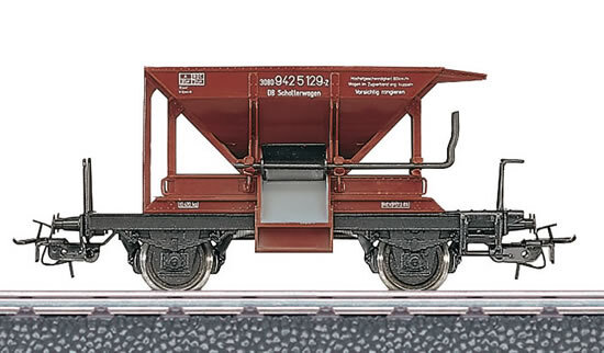 Deux nouveaux wagons viennent ainsi compléter le parc roulant. Le premier (Märklin 44610) est un wagon à ballast type Talbot de la DB AG (V), le second (Märklin 4431) est un tombereau El-u 061de la DB avec chargement de charbon (IV). Ces deux wagons sont de la gamme « Märklin Start-up« . Comme tous les wagons de la CIC, ils passeront à l’atelier peinture pour y recevoir une patine. Puis ils seront directement affectés au service interne de la compagnie, le premier pour l’entretien des voies, le second pour approvisionner le futur dépôt.