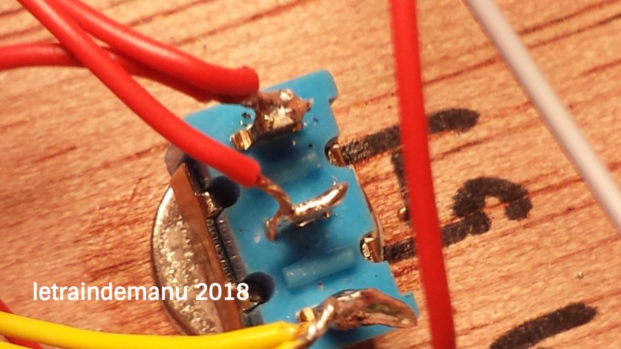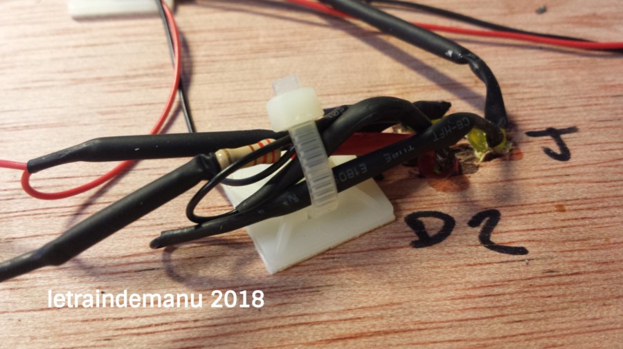 Photo 482 : De la gaine themorétractable a été utilisée pour les branchements des connectiques et des leds. Source : letraindemanu.fr