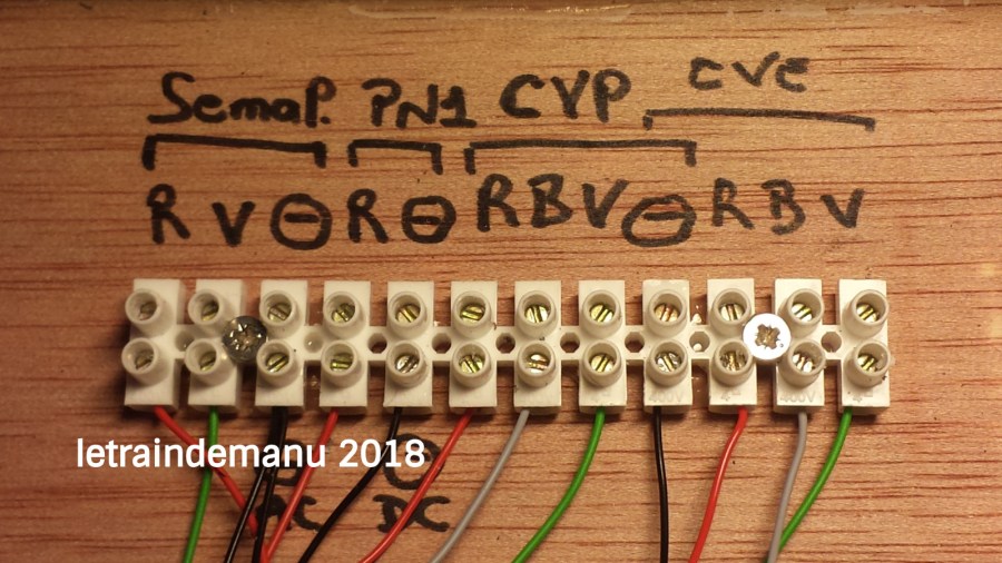 Photo 477 : câblage de l’inverseur du disque Ouest sur le tableau de commande. Source : letraindemanu.fr
