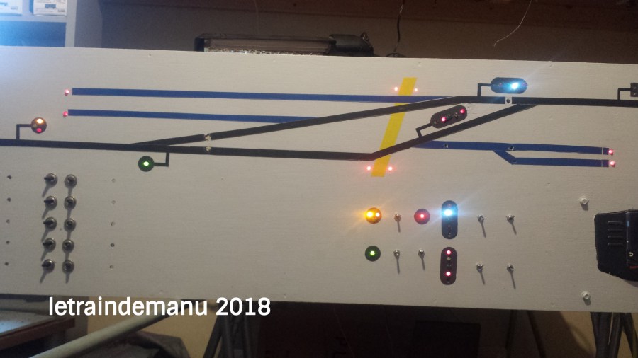 Les boutons poussoirs des aiguilles seront installés plus tard au fur et à mesure de la motorisation de celles-ci. Les leds CMS clignotantes rouges du PN ont été achetées dans la foulées et permettront d’installer prochainement les panneaux routiers. un module sonore « sonnerie » sera sans doute également installé.