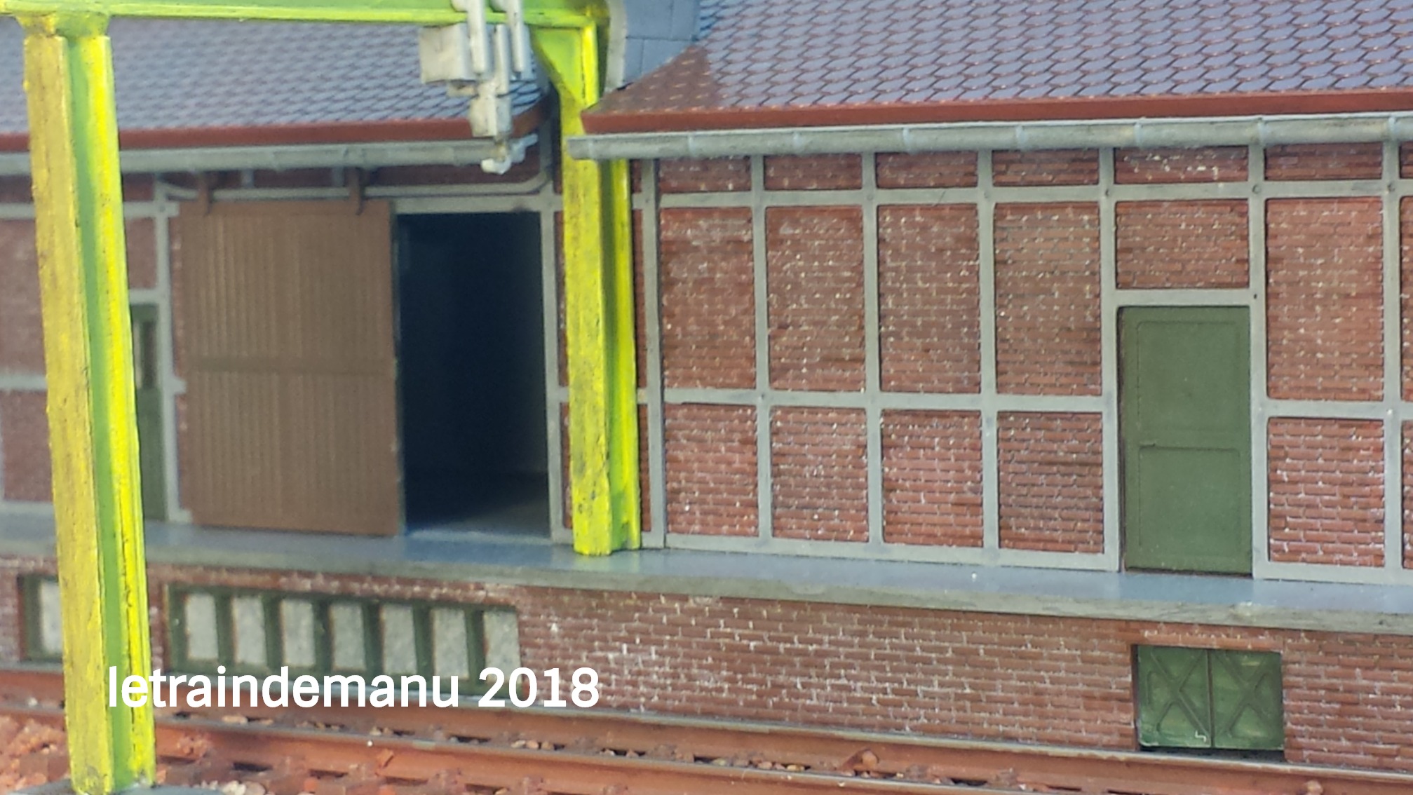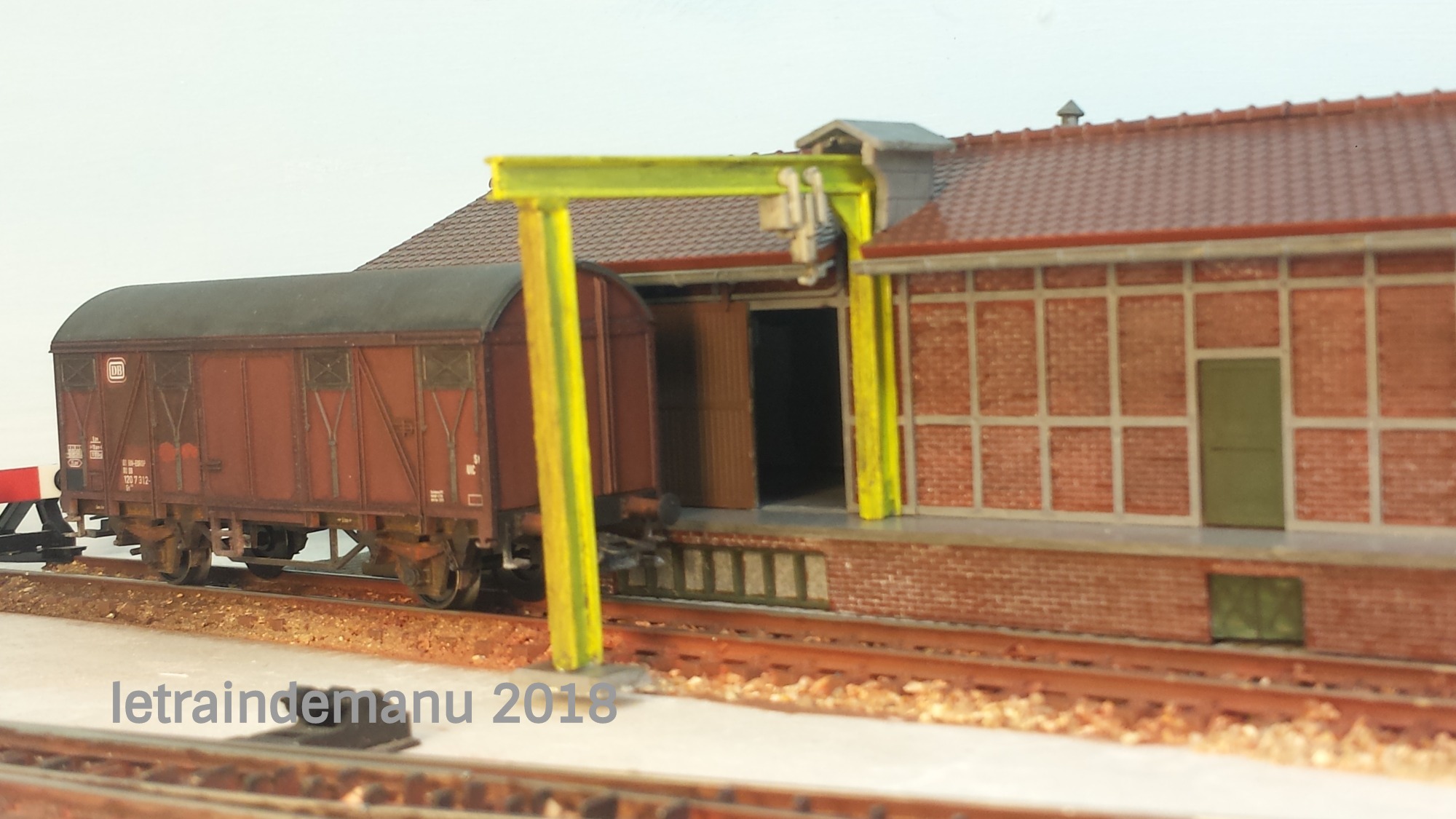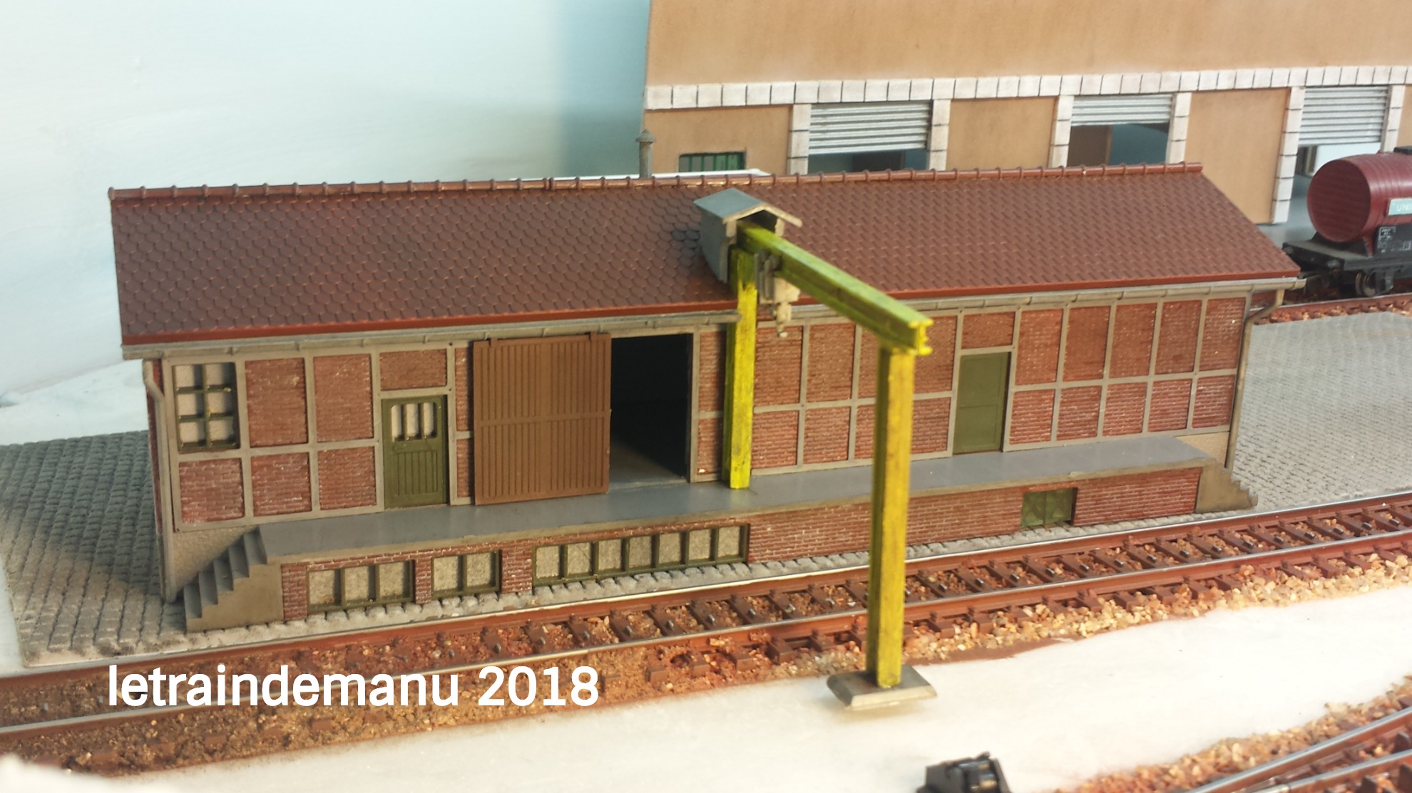 Photos 567 à 569 : L’entrepôt Faller 120152 monté et patiné, est implanté sur l’embranchement E2 de ZI Nord. Source : letraindemanu.fr