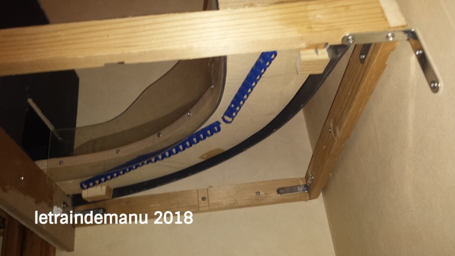 Des peignes de reliure sont vissés sous la plate-forme pour recevoir proprement les futurs câblages : Le feeder traction et les circuits électriques du module ZI Est. Un trou est percé pour réalimenter la voie sur cette portion et passer le câblage pour le témoin d’occupation par circuit de voie (led rouge clignotante au tableau de commande et de contrôle). A ce propos, il va falloir penser à changer les essieux de mes wagons Roco.