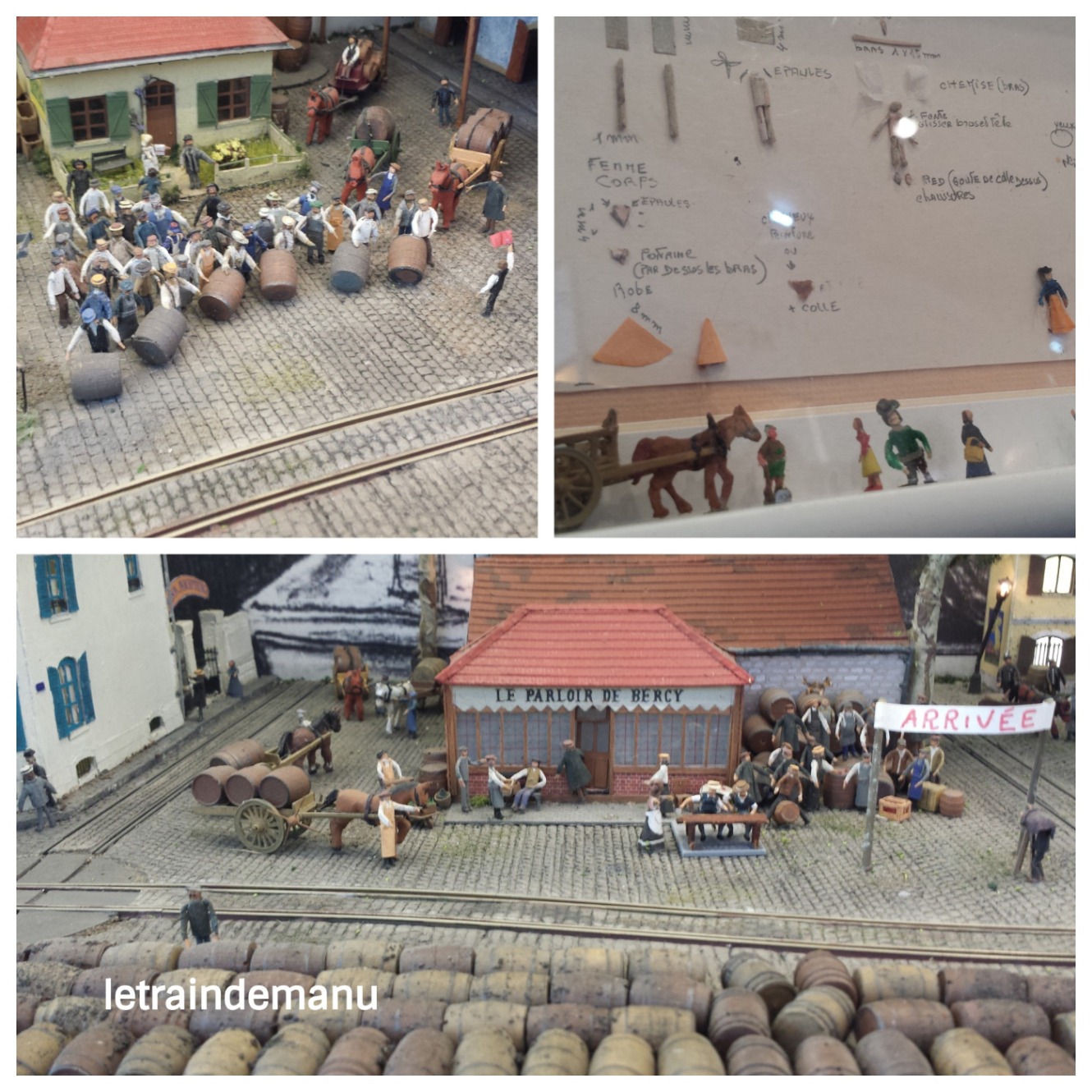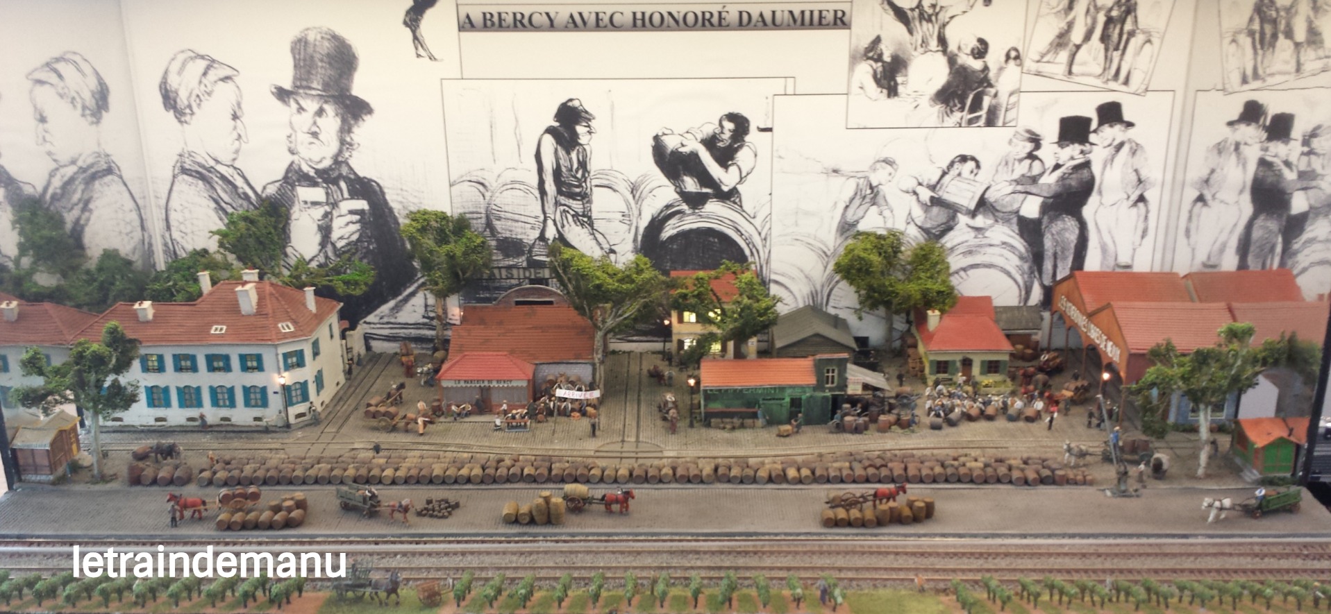 Le diorama » A Bercy avec Honoré Daumier » avait ainsi la particularité d’avoir été créé uniquement par des femmes. Du très haut niveau puisque tout, absolument tout, est fait maison. Y compris les nombreux personnages réalisés en carton. Et il y en avait beaucoup sur ce grand diorama présentant une course de tonneliers dans un Bercy festif. Les bâtiments également sont des créations maison. Seuls les tonneaux sont faits en résine.