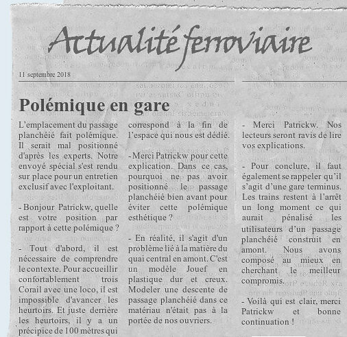 Sur nos forums, nous trouvons des auteurs créant des bandes dessinées voire, pour certains, nous proposer des énigmes policières. Bref, dans notre passion, l’imagination n’a aucune limite, à l’instar du journal ci-dessus, extrait du fil « Dépôt canapé » sur le forum LR Presse.