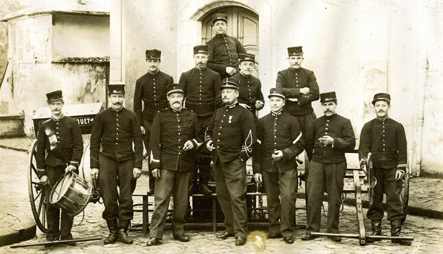 Photo 1016 : La subdivision des sapeurs-pompiers du Plessis-Piquet au début du XXe siècle, photographie de Paul Javelle (collection Christian Gautier). Source : « La Sainte-Barbe, fête des sapeurs-pompiers « , Le Plessis-Robinsson.com