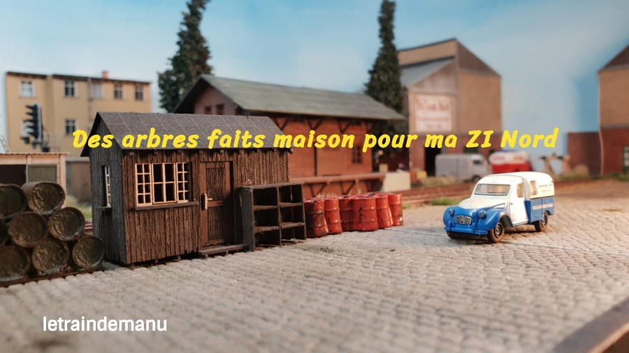 Deux premiers arbres ont été plantés dans ZI Nord. Ce sont des arbres de marque FR (réf 3351) achetés lors ma visite à Paris-Modélisme. Achat » coup de cœur » – un directeur marketing le qualifierait sans doute d’ » achat d’opportunité » – essentiellement pour masquer le départ en coulisse Est derrière le bâtiment du négociant en combustibles « Laure Noirt ».