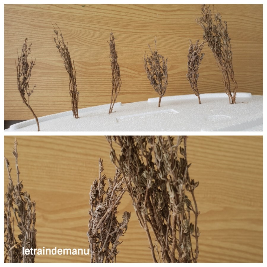 Photo 1049 : Un échantillon de branches de thym sélectionné pour ce premier essai. Source : letraindemanu.fr
