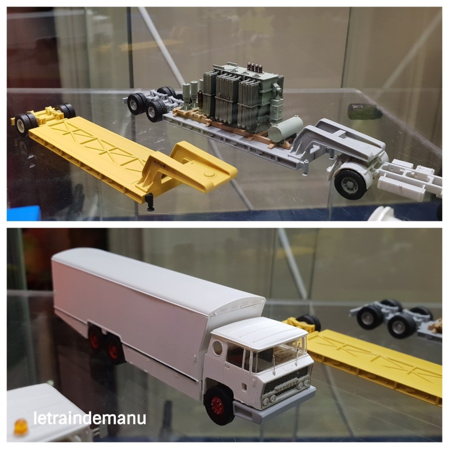 Autres nouveautés déjà disponibles dans le domaine routier, une remorque porte-engins et le camion Bernard disponible en plusieurs versions dont une dépanneuse et un fourgon TV.
