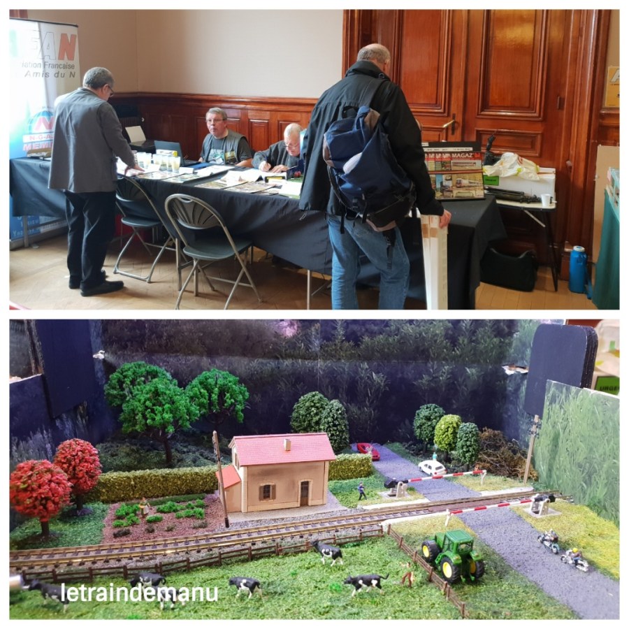 Photo 1087 : Le stand de l’AFAN et le diorama passage à niveau en N, exposition de Saint-Mandé 2019. Source : letraindemanu.fr