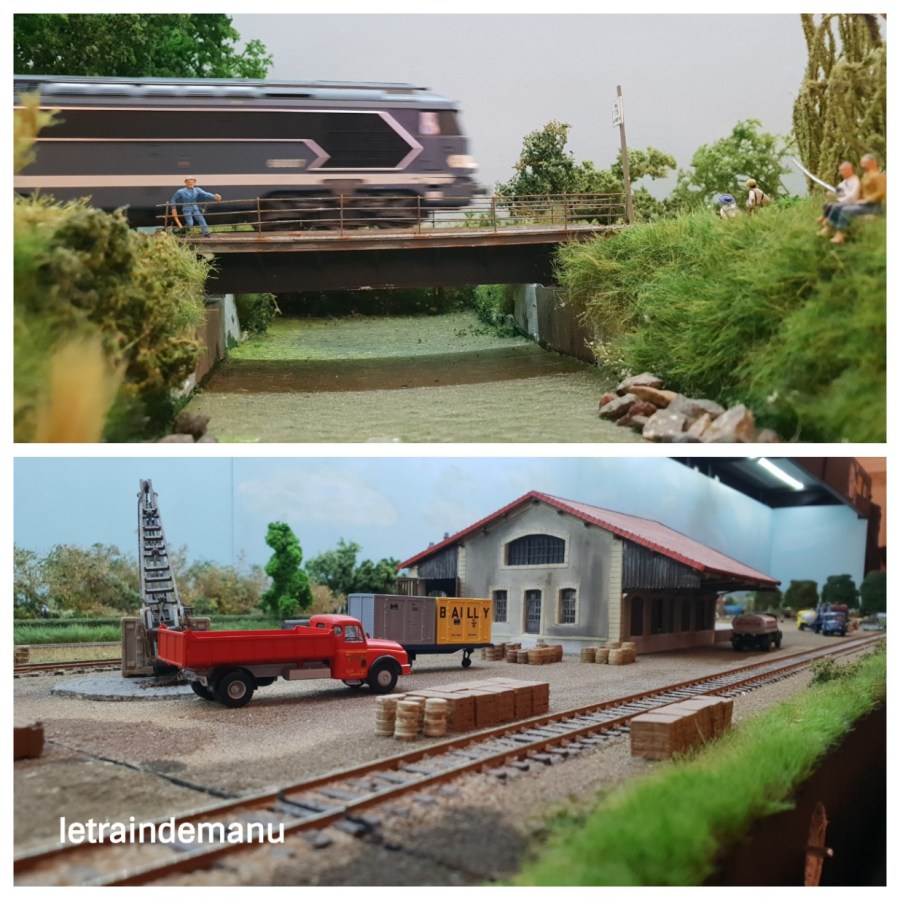 Dommage, il était exhibé dans la même configuration qu’auparavant alors qu’il semblerait que les extensions étaient prêtes. Une incompréhension sur la surface disponible sur le stand expliquerait cette disposition. En effet, un nouveau module intermédiaire avec relief négatif, entre la gare et l’annexe, est déjà créé pour allonger le tracé. Ce n’est pas bien grave, nous aurons l’occasion de le revoir dans une prochaine expo. En attendant, j’en ai profité pour reprendre quelques clichés.