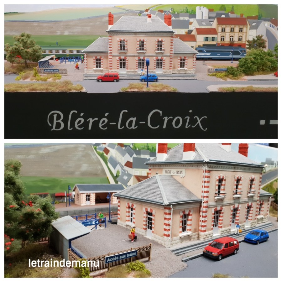 Photos 1105 à 1108 : Gare de Bléré-la-Croix en Ho présentée par RD Passion à Saint-Mandé 2019. Source : letraindemanu.fr