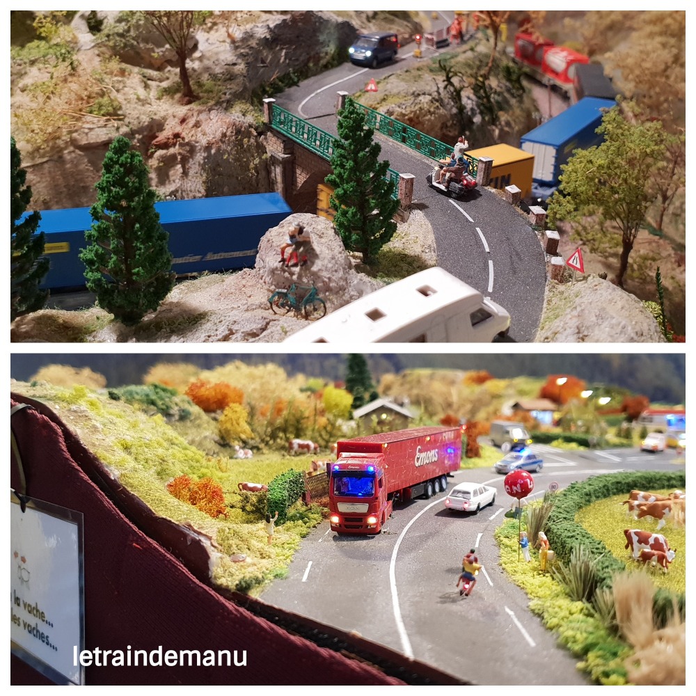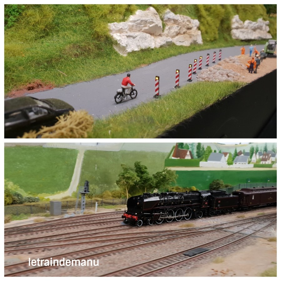 Dommage, il était exhibé dans la même configuration qu’auparavant alors qu’il semblerait que les extensions étaient prêtes. Une incompréhension sur la surface disponible sur le stand expliquerait cette disposition. En effet, un nouveau module intermédiaire avec relief négatif, entre la gare et l’annexe, est déjà créé pour allonger le tracé. Ce n’est pas bien grave, nous aurons l’occasion de le revoir dans une prochaine expo. En attendant, j’en ai profité pour reprendre quelques clichés.
