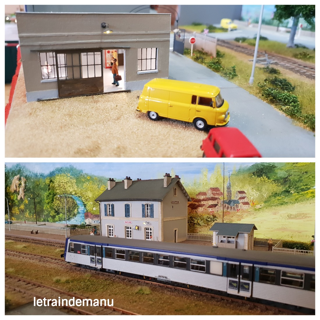 Photos 1118 et 1119 : La gare de Mufflins en Ho présentée par le CMPK 0 à l’exposition de Saint-Mandé 2019. Source : letraindemanu.fr