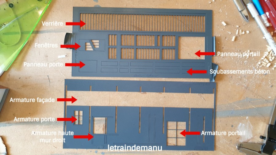 ● Suggestion portes ouvertes : si vous souhaitez montrer l’intérieur du hangar et donc avoir le portail ouvert, les chutes de grappes sont suffisantes pour créer une armature semblable pour l’autre face. Á prévoir avant la pose des pièces d’origine pour fabriquer les gabarits.