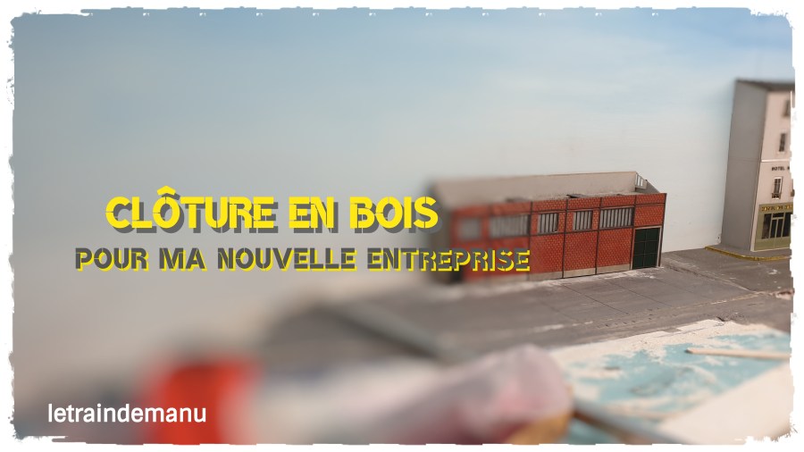 Ils sont simplement confectionnés avec du bois type allumette (mais sans bout soufré) issu d’un lot récupéré par mon épouse. La longueur doit être supérieure à la hauteur souhaitée, ce qui facilitera le travail de peinture. Ils sont simplement peints avec la même peinture que la cour. Après séchage planté dans du polystyrène, ils sont coupes à la bonne longueur afin qu’ils dépassent un peut la clôture en bois. Les poteaux sont ensuite collés à la Colle 21 cyanoacrylate de chaque côté de la barrière.