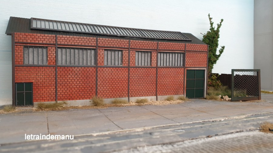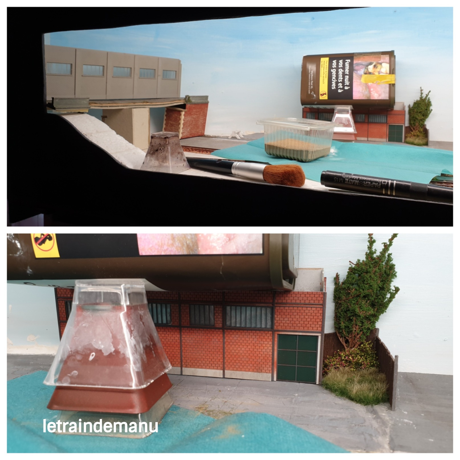 Photos 1302 à 1304 : L’usine Cités miniatures dans son nouvel environnement. Le toit n’a pas été collé pour garder un accès à l’éclairage intérieur. Source : letraindemanu.fr
