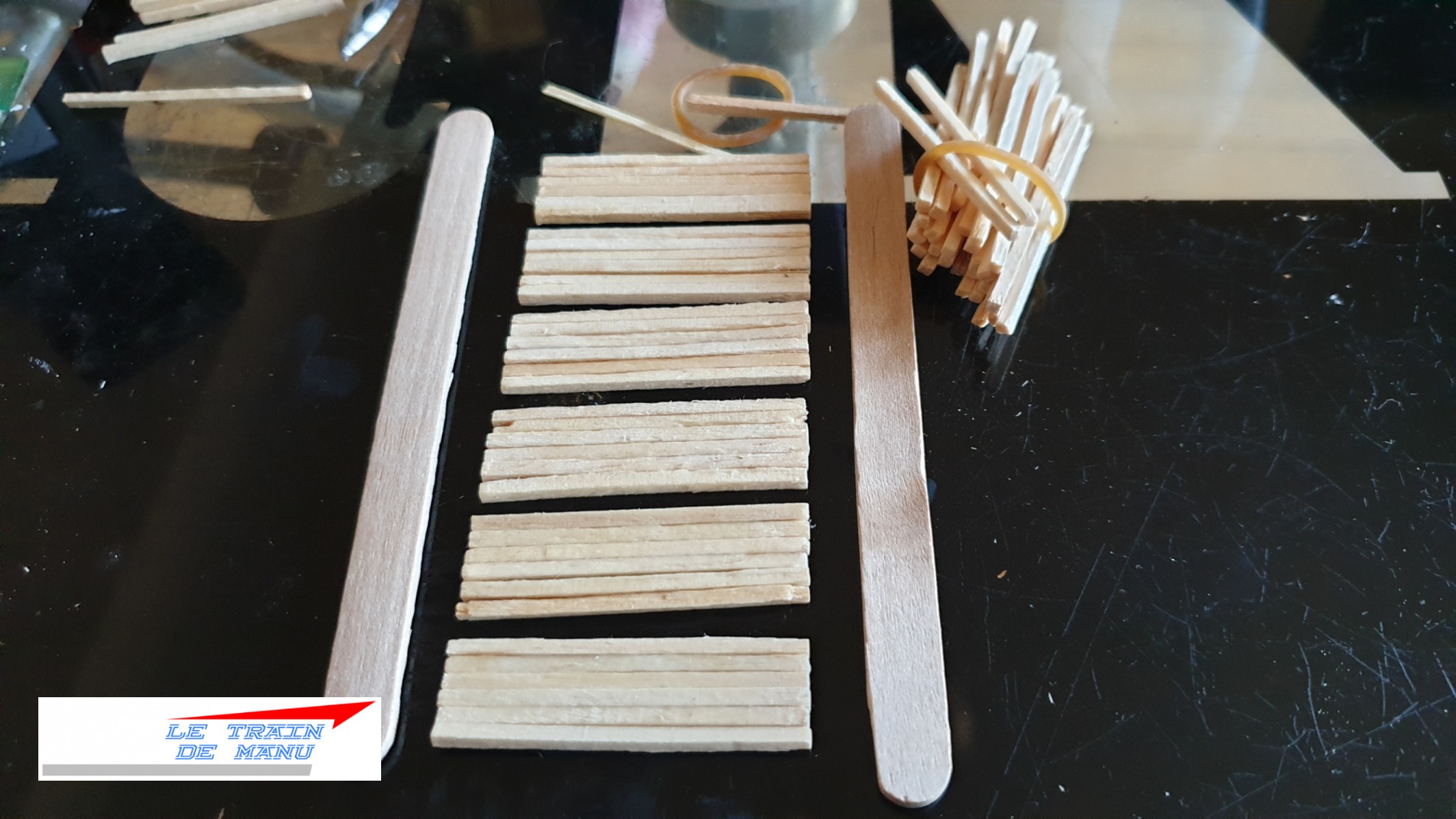 Photos 1542 et 1543 : Installation de la clôture en bois à base d’allumettes. Source : letraindemanu.fr