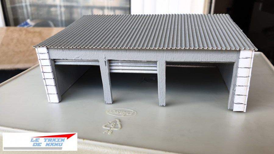 Le bâtiment, tout en carton, ne sera pas peint puisqu’il est censé être tout neuf. Avant sa pose définitive, je travaillerai avec un peu de terre à décor.