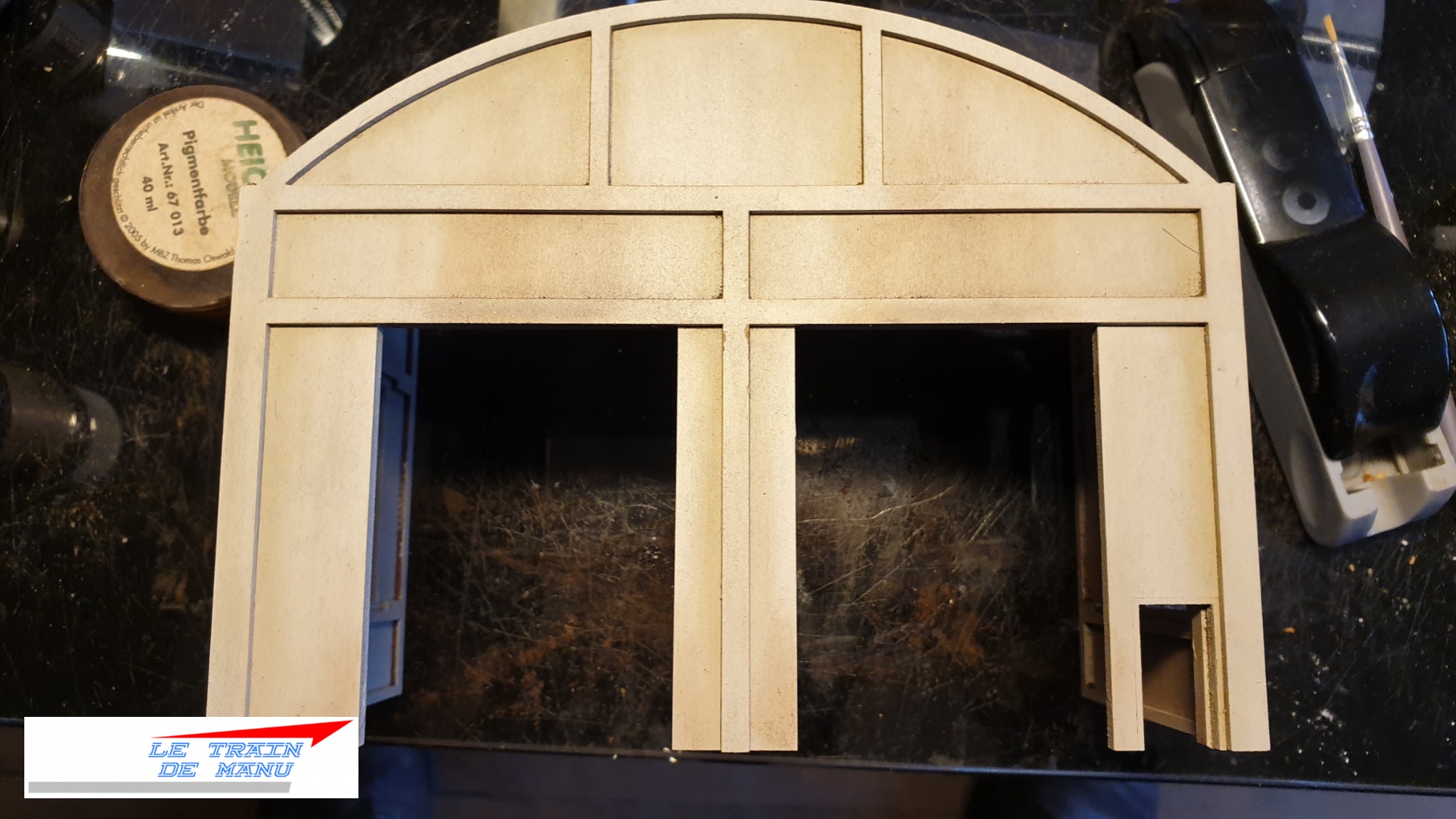 Photo 1568 : La remise à locomotive en faible profondeur proposée par Cités miniatures est en cours de construction. Source : letraindemanu.fr