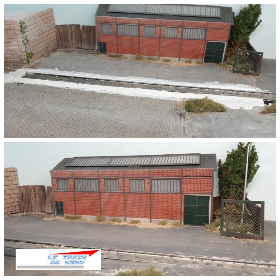 Photo 1648 et 1649 : intégration de la nouvelle voie voie Märklin K et réfection de la cour en béton. Source : letraindemanu.fr