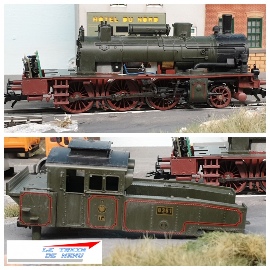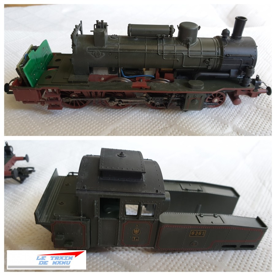 Photo 1725 : : La locomotive à vapeur Märklin 36741, type T12 prussienne après application d’une première couche de jus crasse. Source : letraindemanu.fr