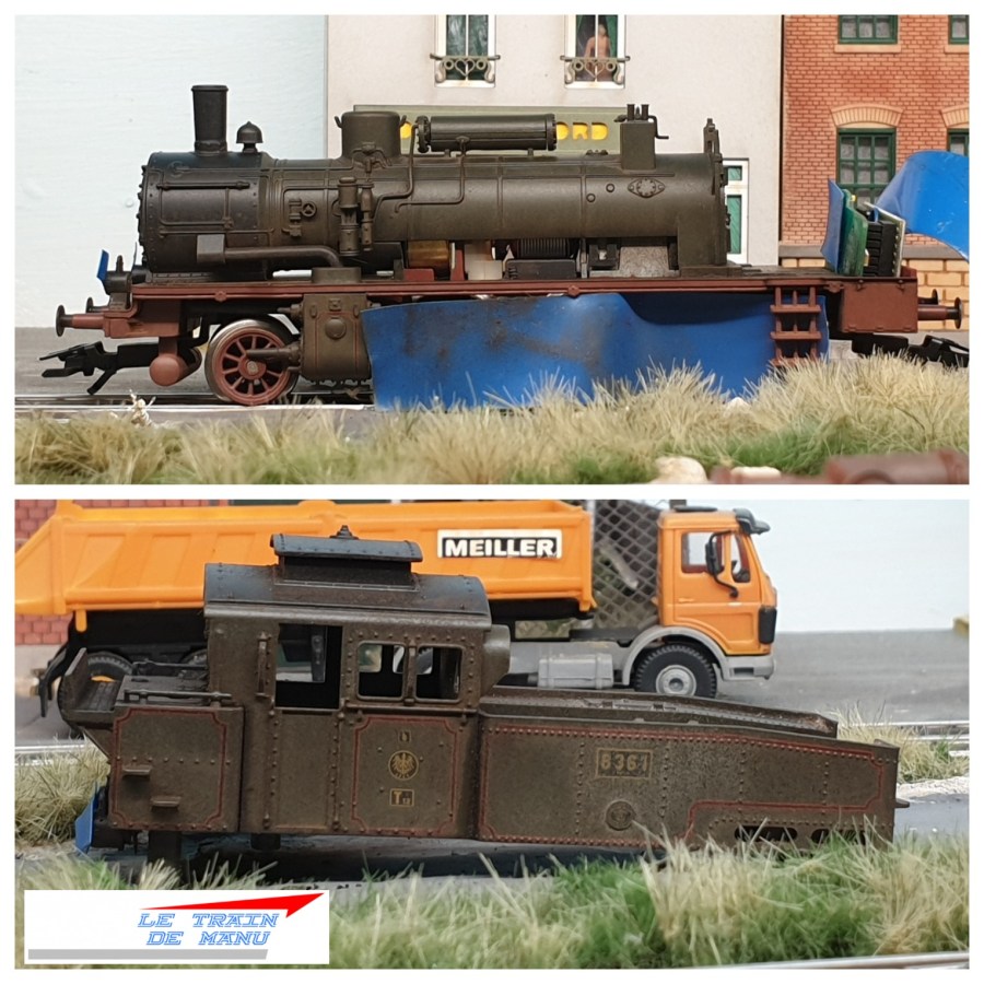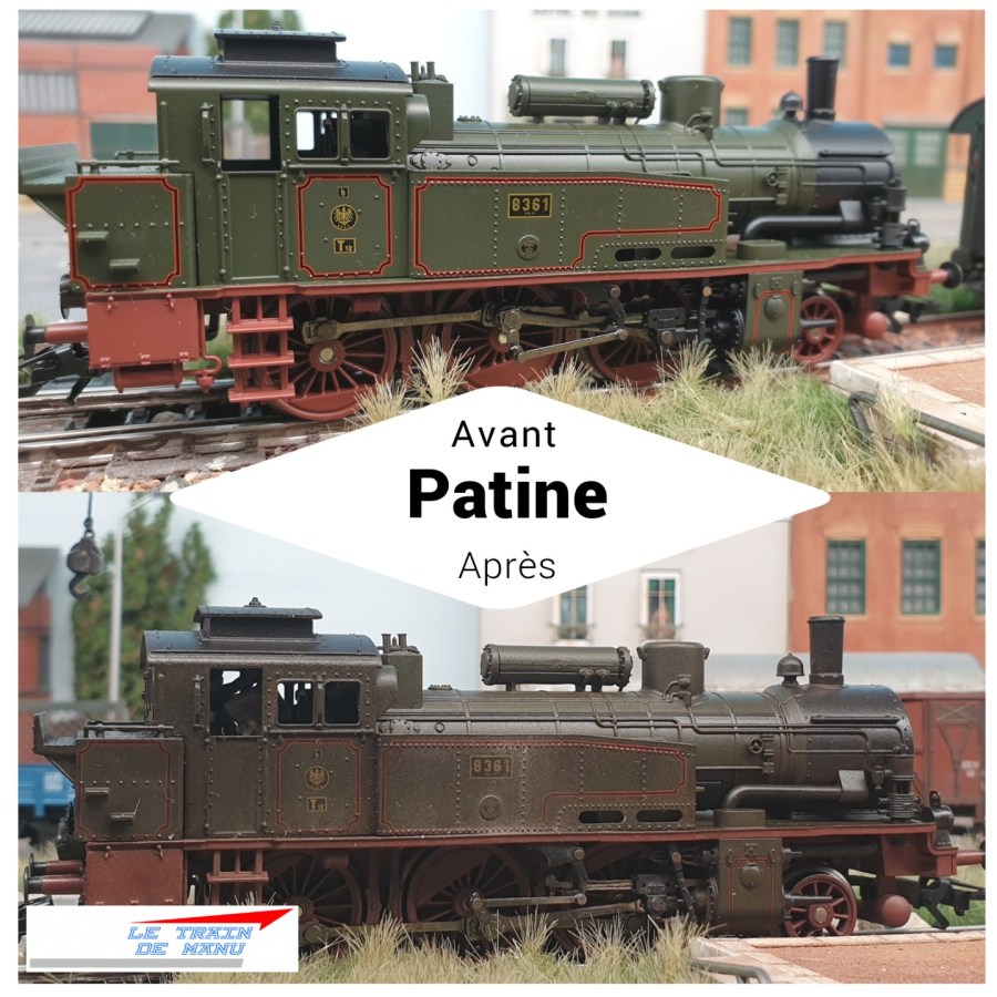 Photo 1726 : La locomotive à vapeur Märklin 36741, type T12 prussienne après application d’une seconde couche de jus crasse. Source : letraindemanu.fr