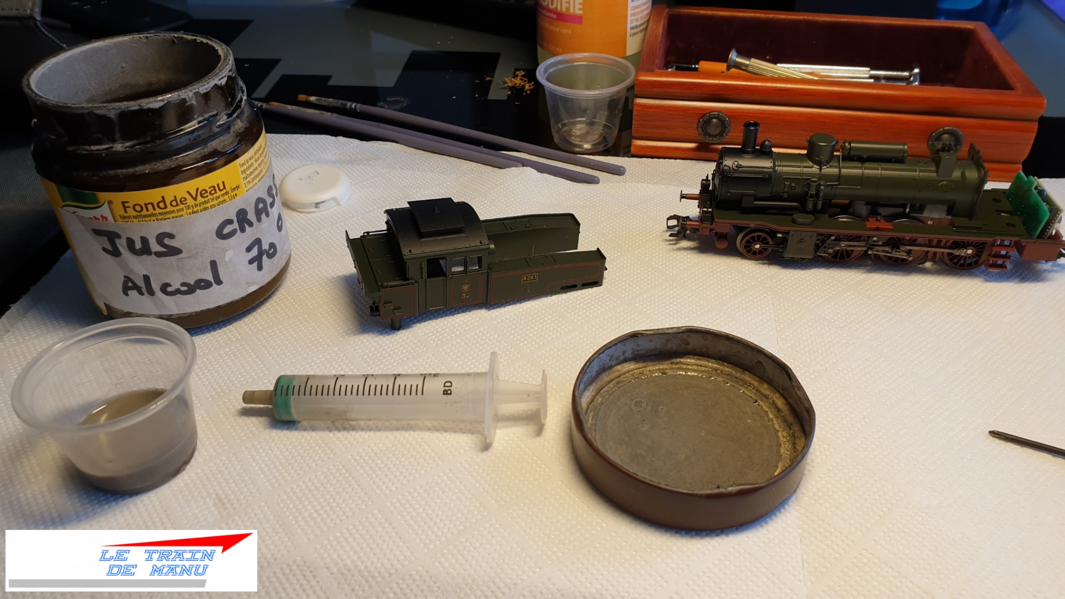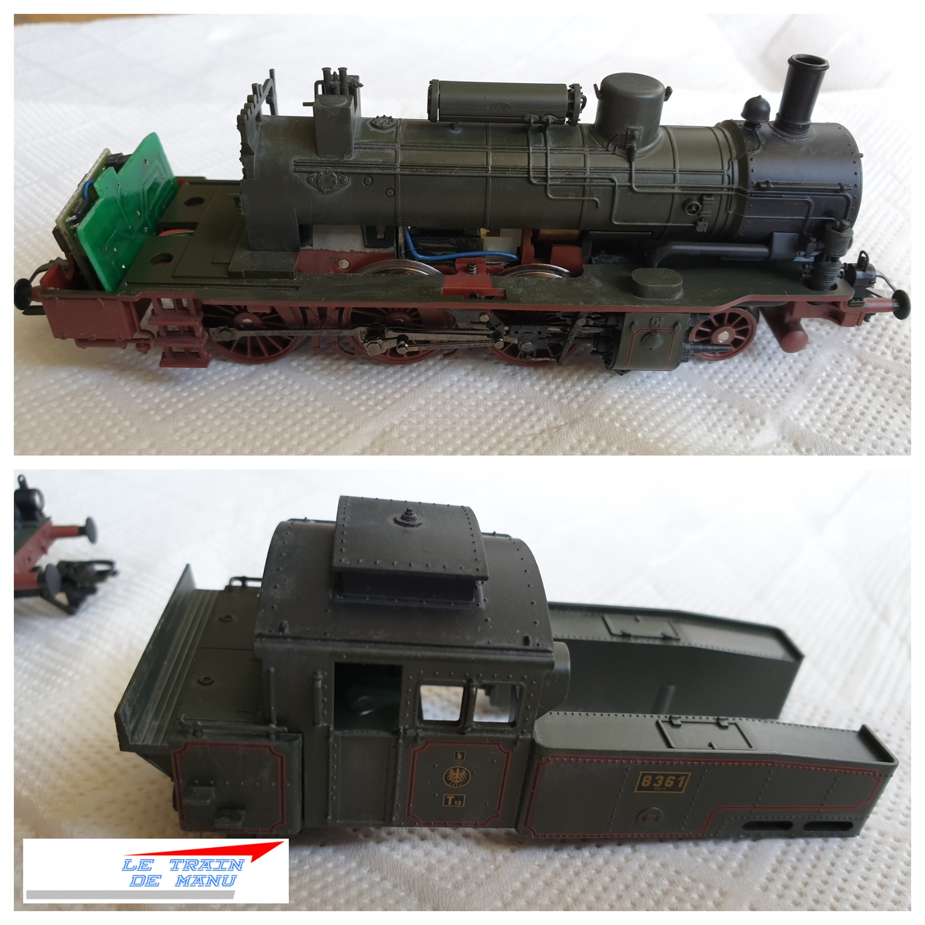 Photo 1726 : La locomotive à vapeur Märklin 36741, type T12 prussienne après application d’une seconde couche de jus crasse. Source : letraindemanu.fr