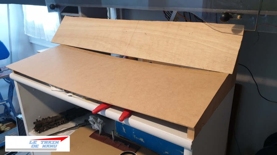 La surface du pupitre en en MDF de 3mm (fond d’armoire).