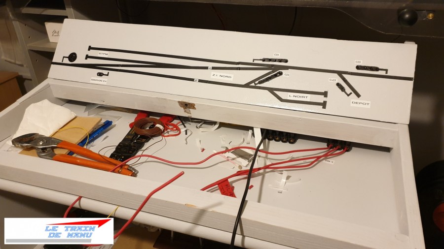 Photo 1739 : Électricité du réseau. Câblage du nouveau tableau de commande. Source : letraindemanu.fr