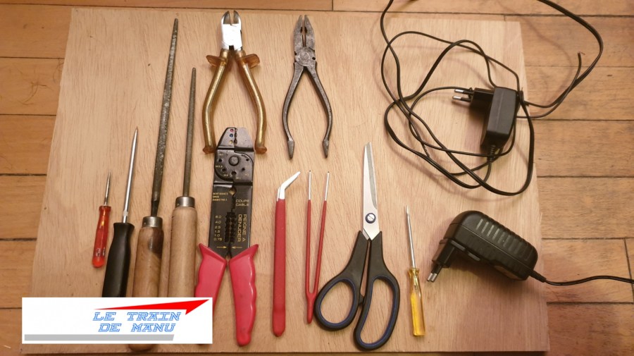 – un fer a souder 40/80 watt avec une éponge humide (pour nettoyer la pane du fer entre chaque soudure) + soudure 60% en / 40% pb