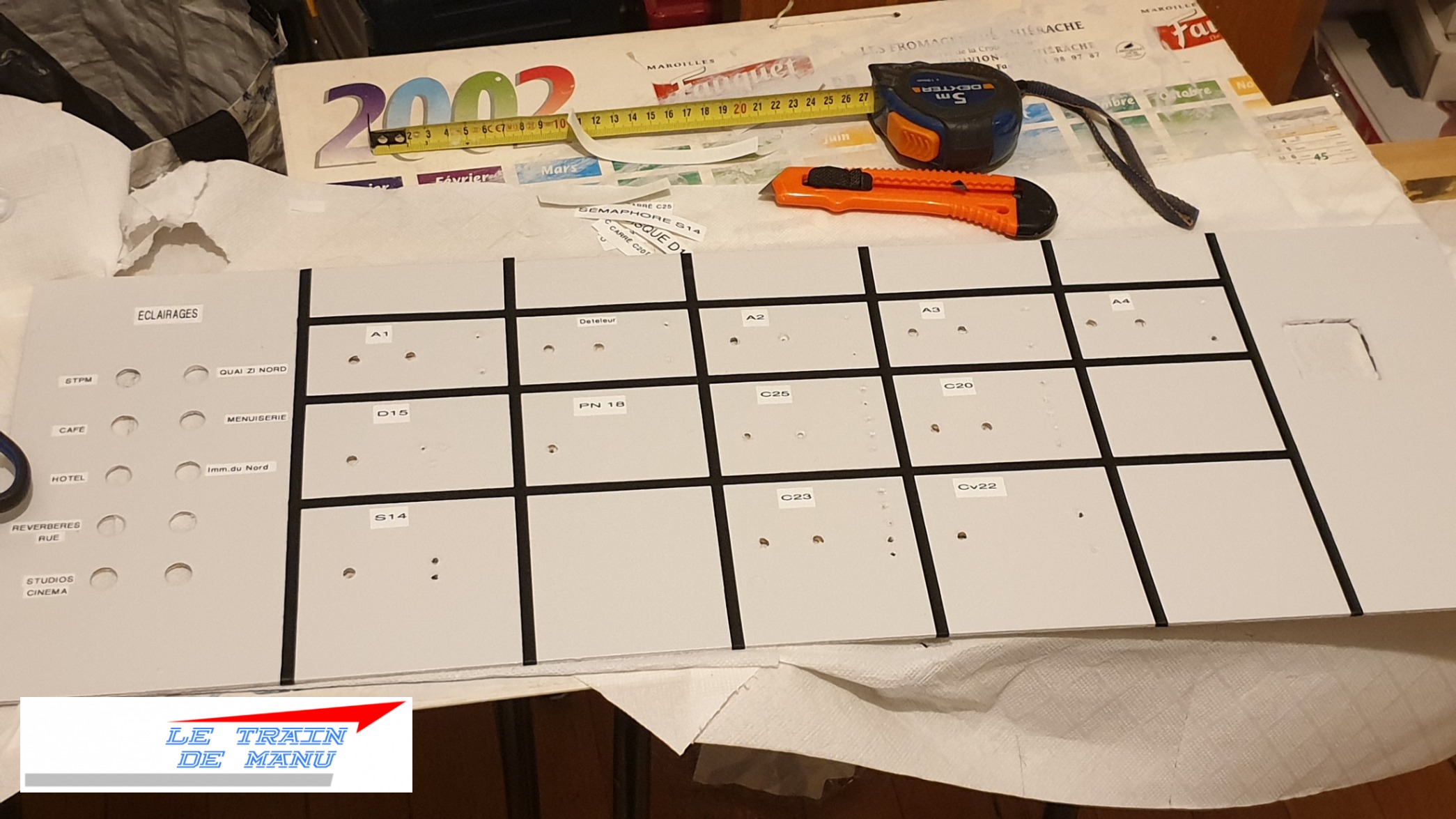Photos 1735 à 1738 : construction du nouveau tableau de commande du réseau. Source : letraindemanu.fr