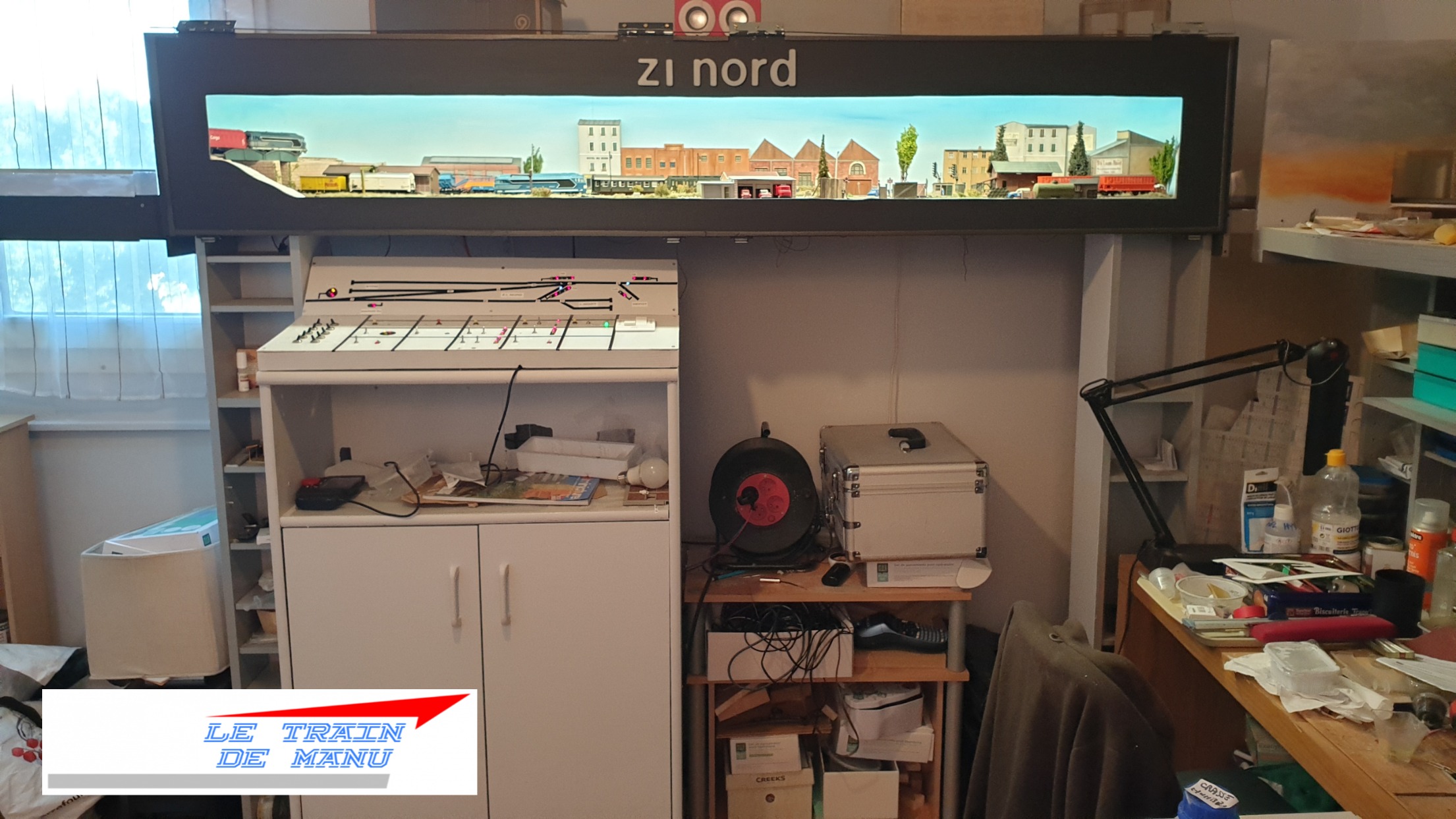 ZI Nord comporte 10 secteurs d’éclairages classés par géographie : STPM, hôtel et café, studio de cinéma (Usine Walter), menuiserie, gare, Laure Noirt, réverbères de voie publique, immeubles résidentiels et signaux lumineux fixes (heurtoirs). Un feeder 12v + alimente les 10 interrupteurs monopolaires. Chaque interrupteur renvoie alors sur chaque ligne électrique. Un voyant témoin n’est ici pas nécessaire.