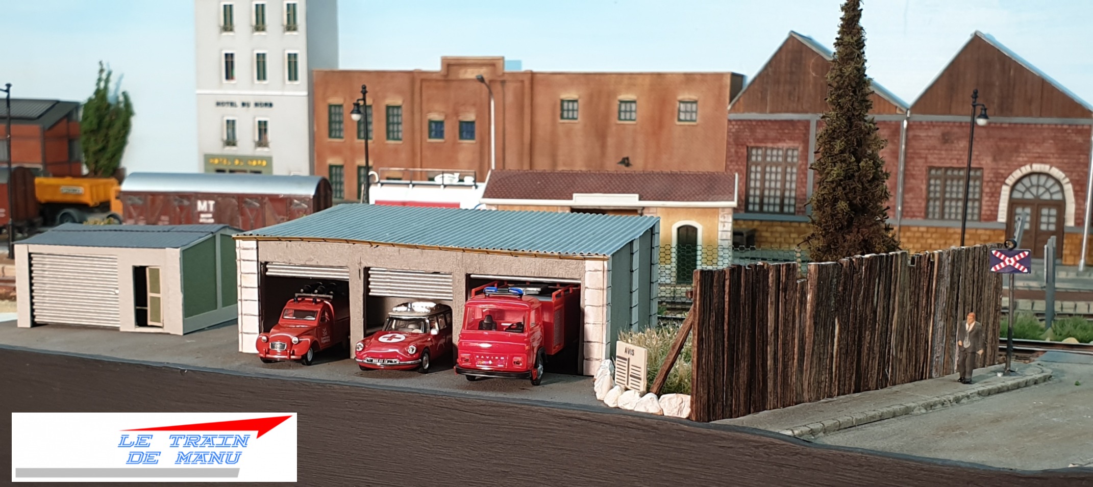 Nous sommes tous confrontés à la même problématique d’espace et notre réseau sera toujours trop petit. La bande son va ici permettre de l’agrandir artificiellement en suggérant une vie au-delà de notre installation. Ainsi, sur mon module ZI Nord de 200 x 50 cm, l’audio permet de suggérer des bâtiments non représentés comme l’église ou l’école, sensés se situer derrière les immeubles de fond de décor. Dans le même esprit, le montage sonore va donner vie à cette bourgade semi-rurale en évoquant les activités humaines quotidiennes : travail, marché,…