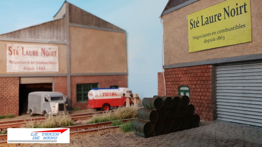 S.T.P.M. : La Société de Travaux Publics et de Maintenance justifie un gros trafic de wagons en tous genre sur ses deux voies embranchées : celle du fond reçoit les matières premières en wagons tombereaux ou plats (sable, gravier, briques,…) et celle du premier plan les petites fournitures en wagons couverts (plomberie, quincaillerie,…).
