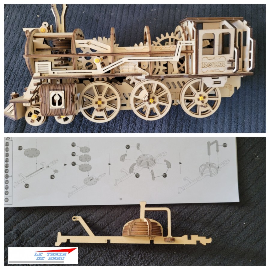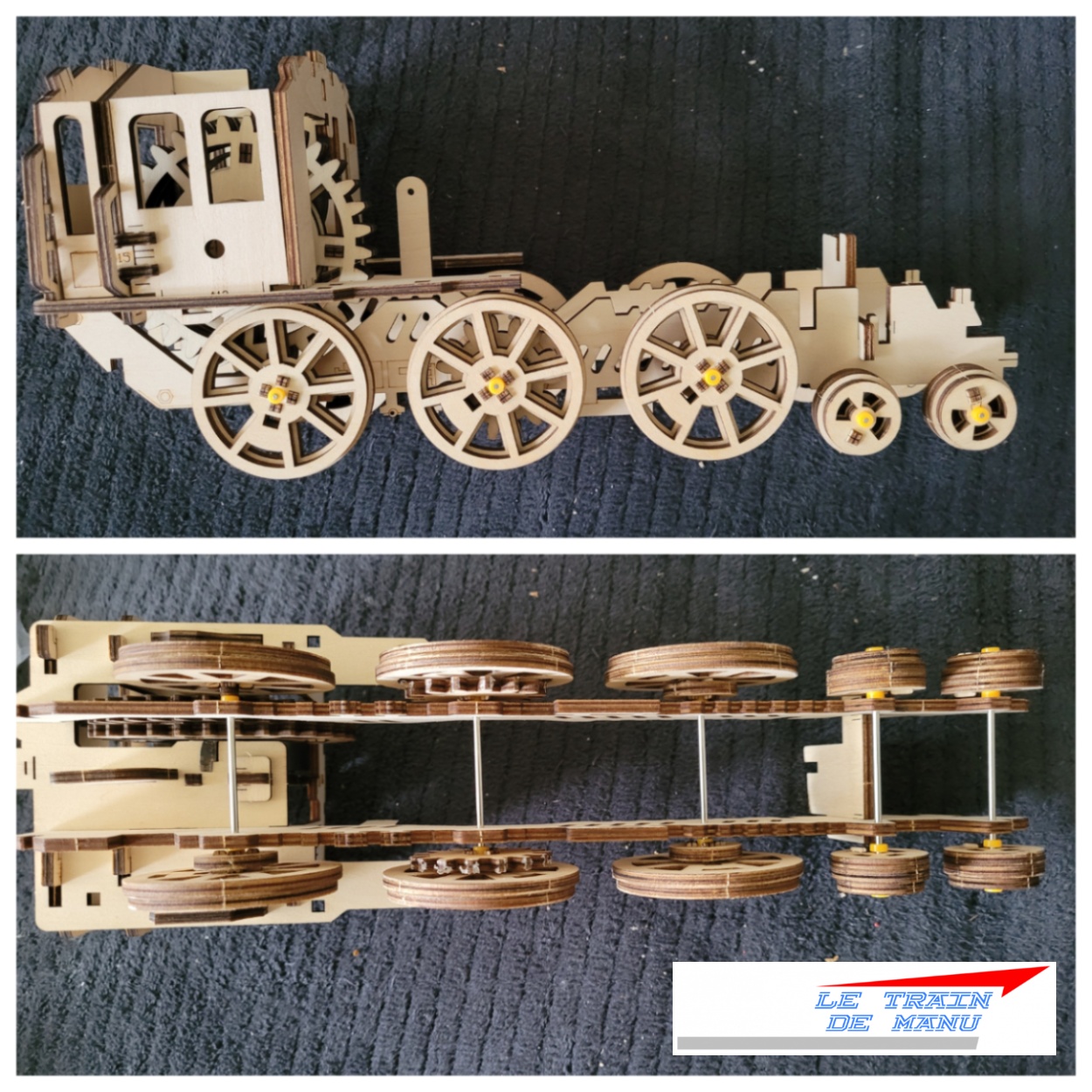 Photo 2145 et 2146 : la locomotive en bois enfin montée. Crédit : letraindemanu.fr