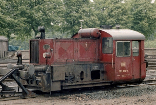 Photo 2148 : Köf II Br323 270-9, Photo de Sebastian Tuschick, à Flensburg 1982. Source : Sebtus.de.