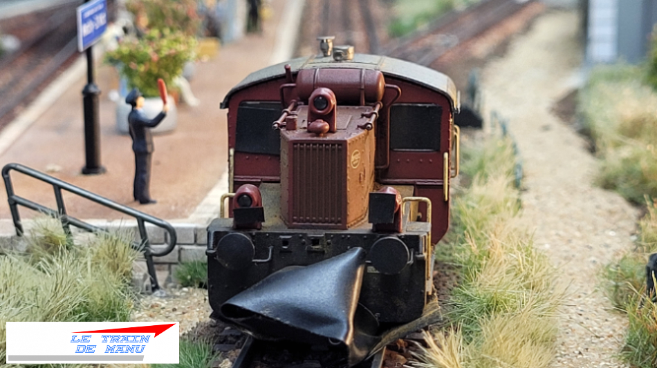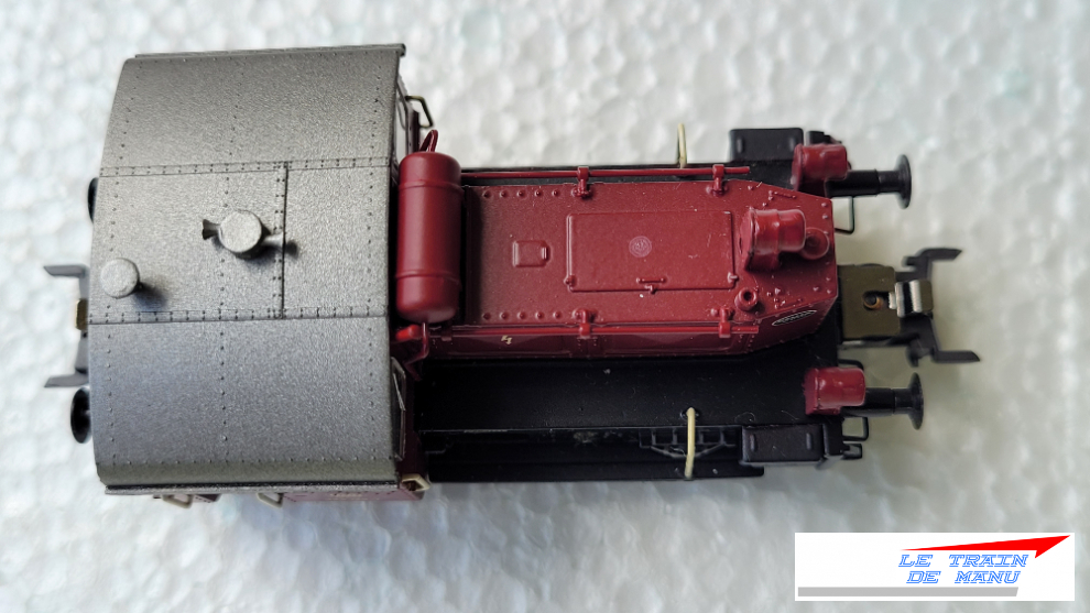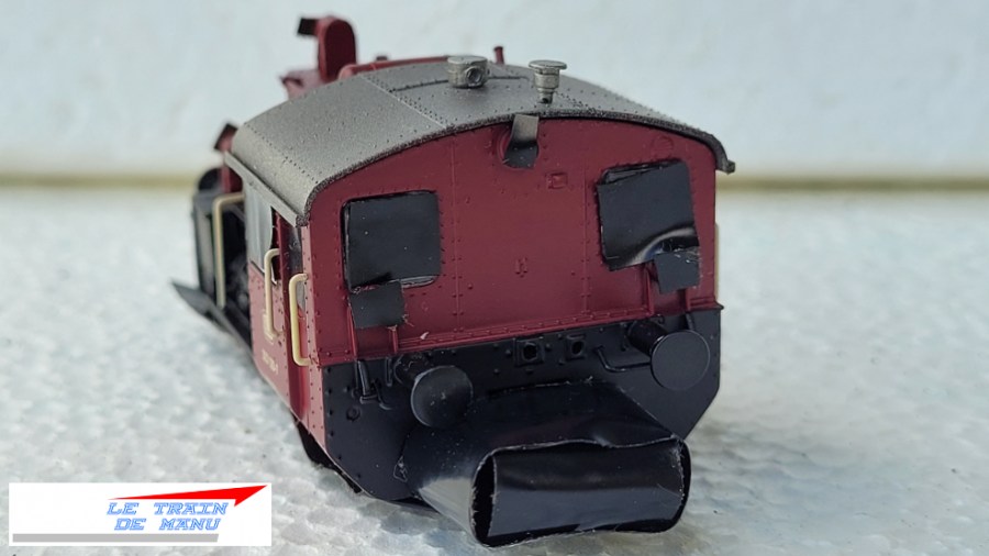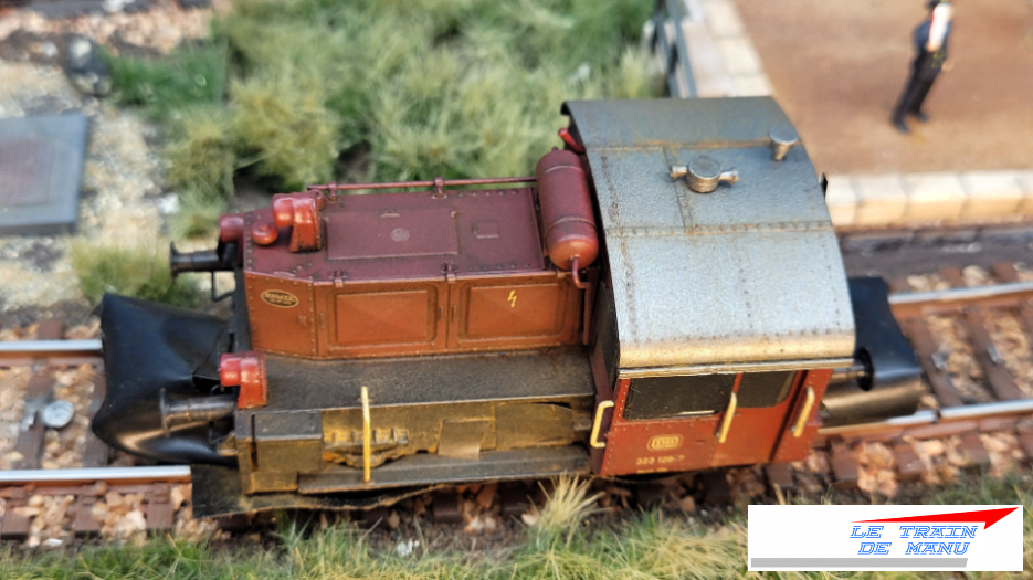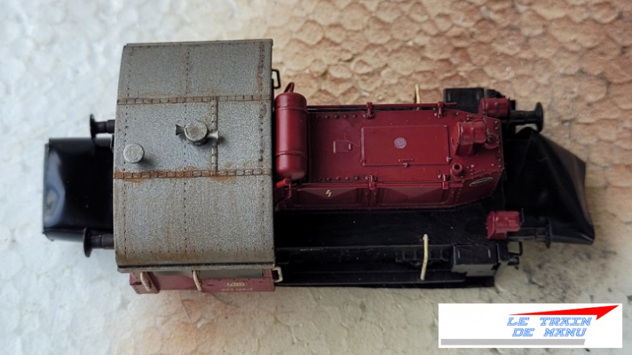 La patine doit être légère. En réalité, les personnels entretenaient plutôt bien leurs matériels. De toute façon, il est plus facile par la suite d’accentuer une patine trop légère que d’atténuer une patine trop prononcée. Les travaux se font sans démontage car l’engin est minuscule et des fils relient le toit avec le décodeur et le châssis.