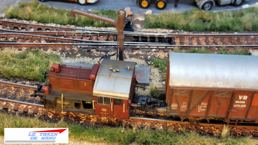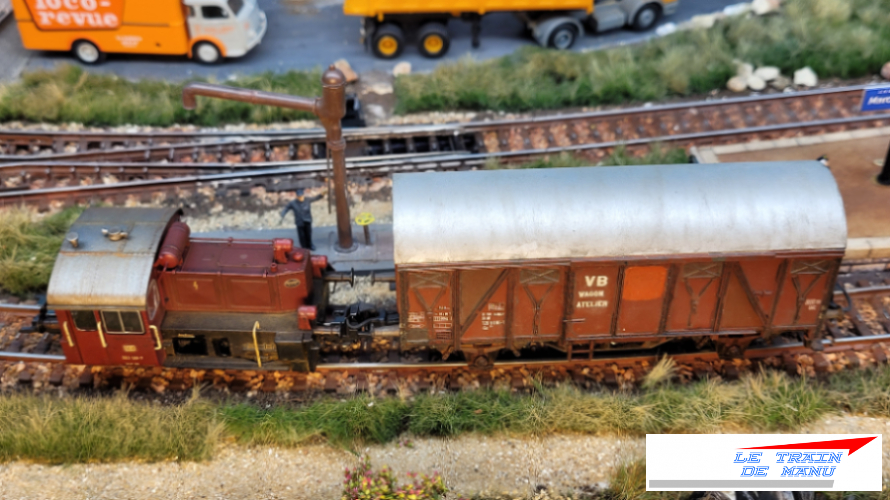 Une journée plus tard, le Köf manœuvre le wagon-atelier du service « Voies et Bâtiments« .
