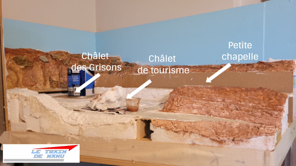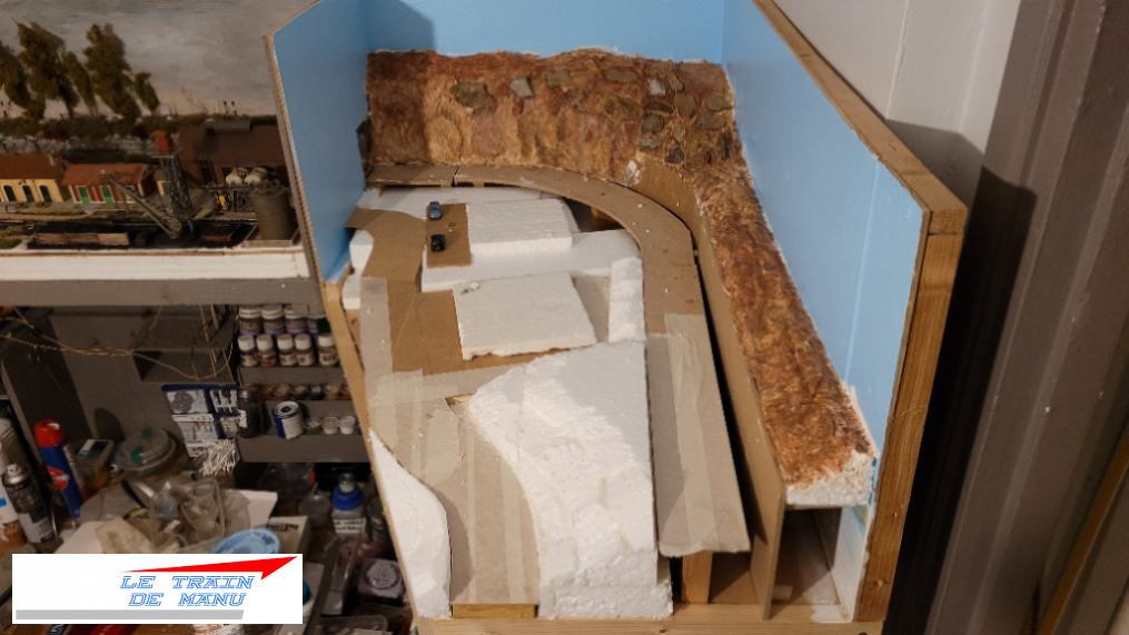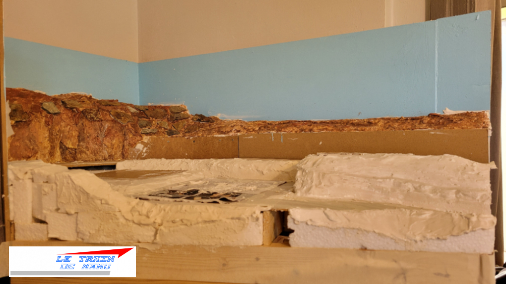 Photo 2205 : Début des travaux sur le relief de premier plan sur le module 4. Source : letraindemanu.fr