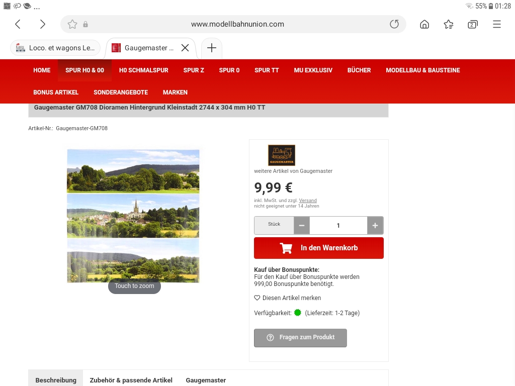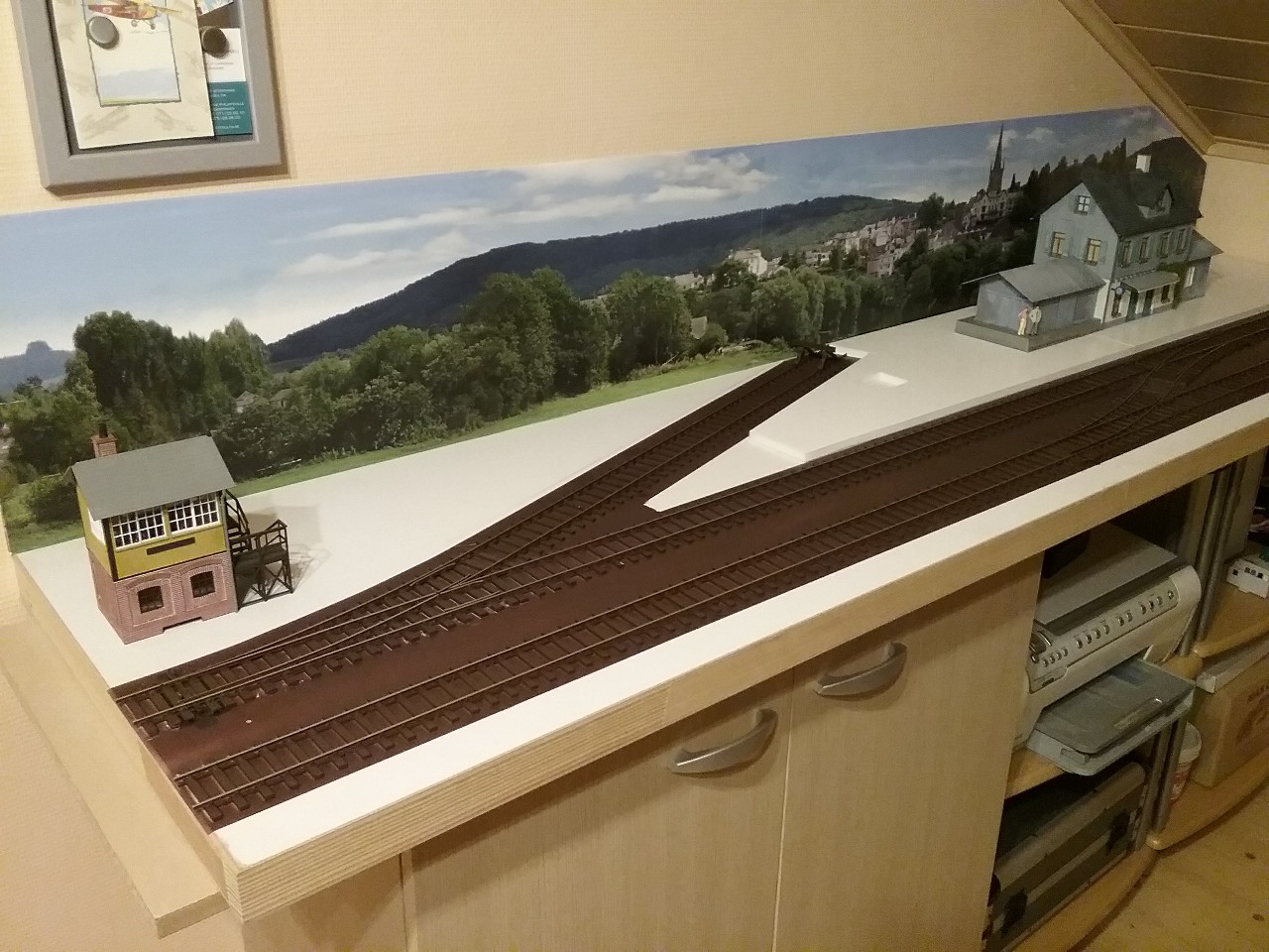 C’est un fond photographique du commerce en 3 parties de chez Gaugemaster (comme j’en avais déjà utilisé un de la marque pour mon réseau HO en son temps) acheté chez Modellbahn Union. Ils ont un beau choix de matériel d’origine anglaise à des prix très intéressants.