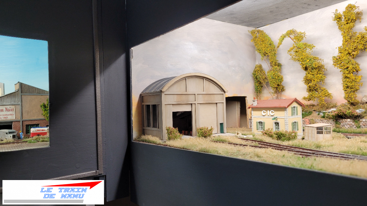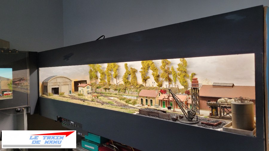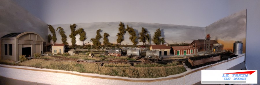 Il me reste encore beaucoup de finitions à réaliser dans ce dépôt : arbre pour masquer le départ en coulisse gauche, château d’eau, remise à outils,… Néanmoins l’allure générale est satisfaisante. Voilà un bel écrin pour présenter mon parc machines.